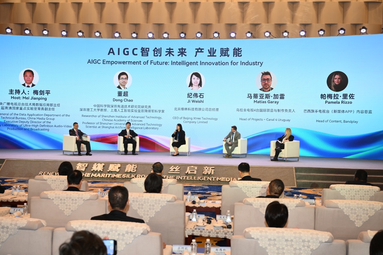 主論壇和智庫活動環節,來自政府部門、媒體、研究機構及相關行業的代表,圍繞國際媒體合作與人文交流、AIGC未來發展及產業應用等主題展開交流討論。現場還發布了「魅力廣東」「五洲會獅」等國際傳播項目、國際合拍微紀錄片《海絲新聲•潮起陽江》開機、「Hi 系列」FAST頻道多語種譯制及CGTN西語頻道拉美地區落播項目。