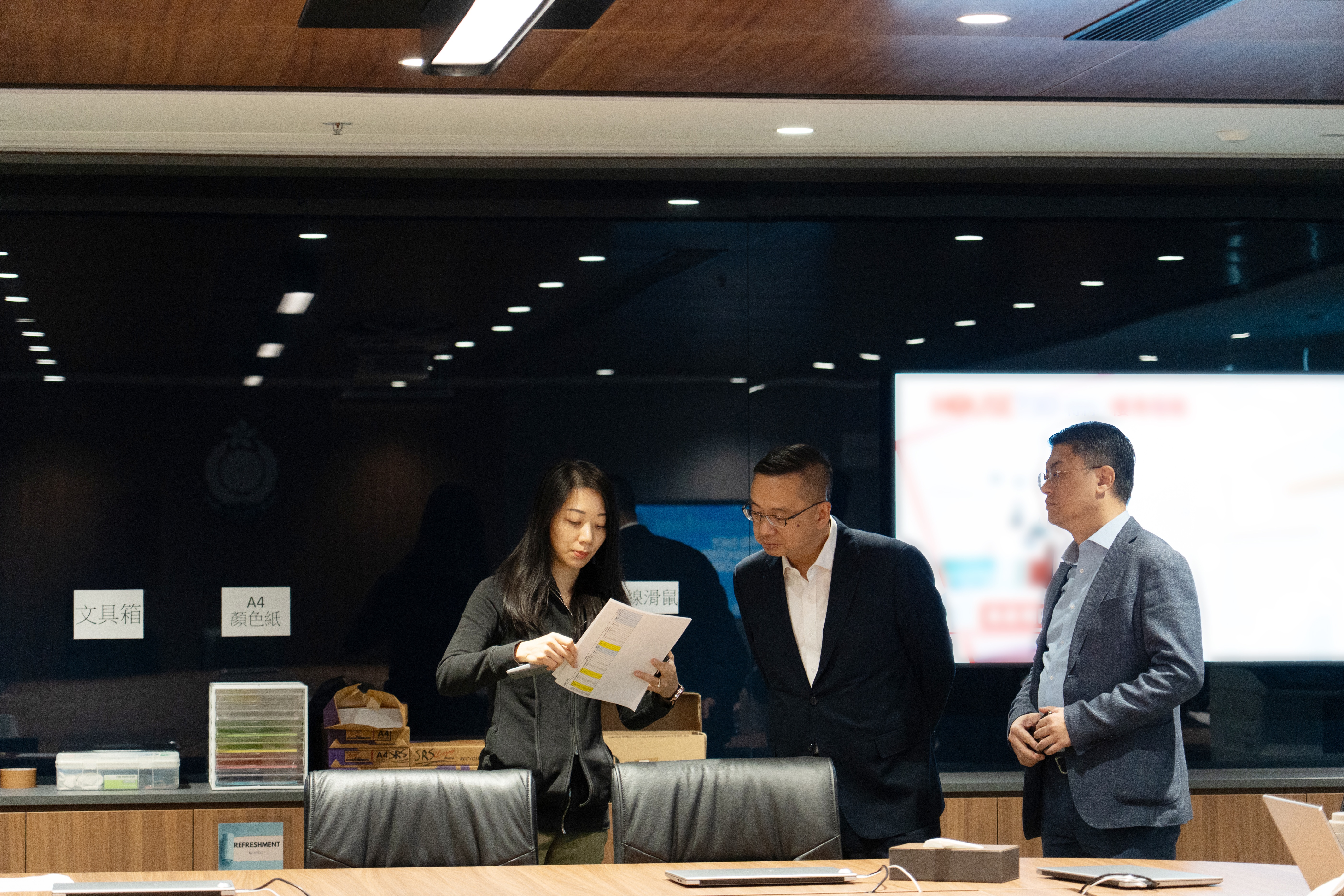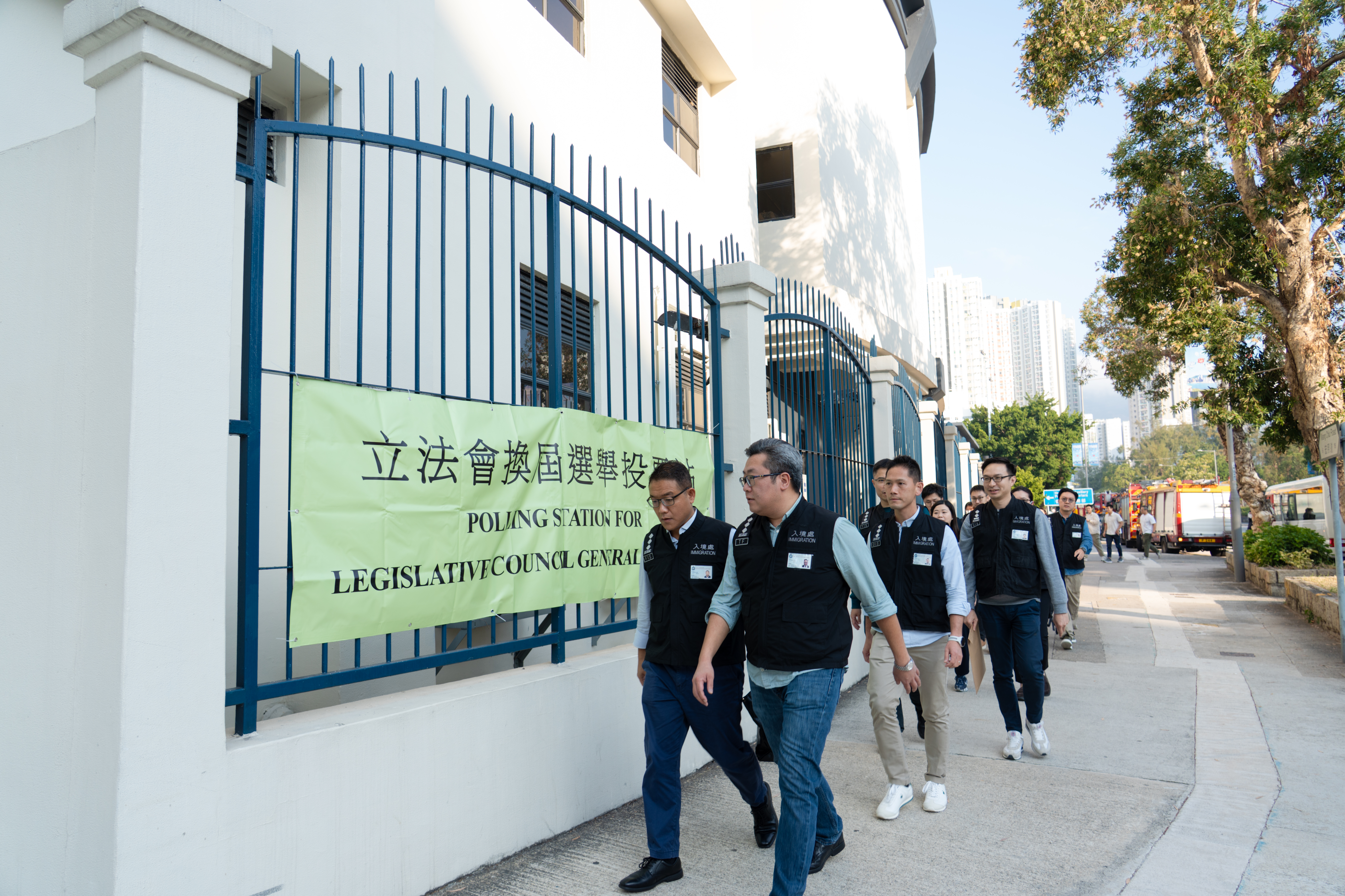 昨天是立法會換屆選舉的重要日子,郭處長早上率領首長級人員完成投票後,隨即聯同蔡副處長(執法、系統及管理)前往總部特別增設的指揮中心,視察部門在各方面支援選舉的工作,了解情況。