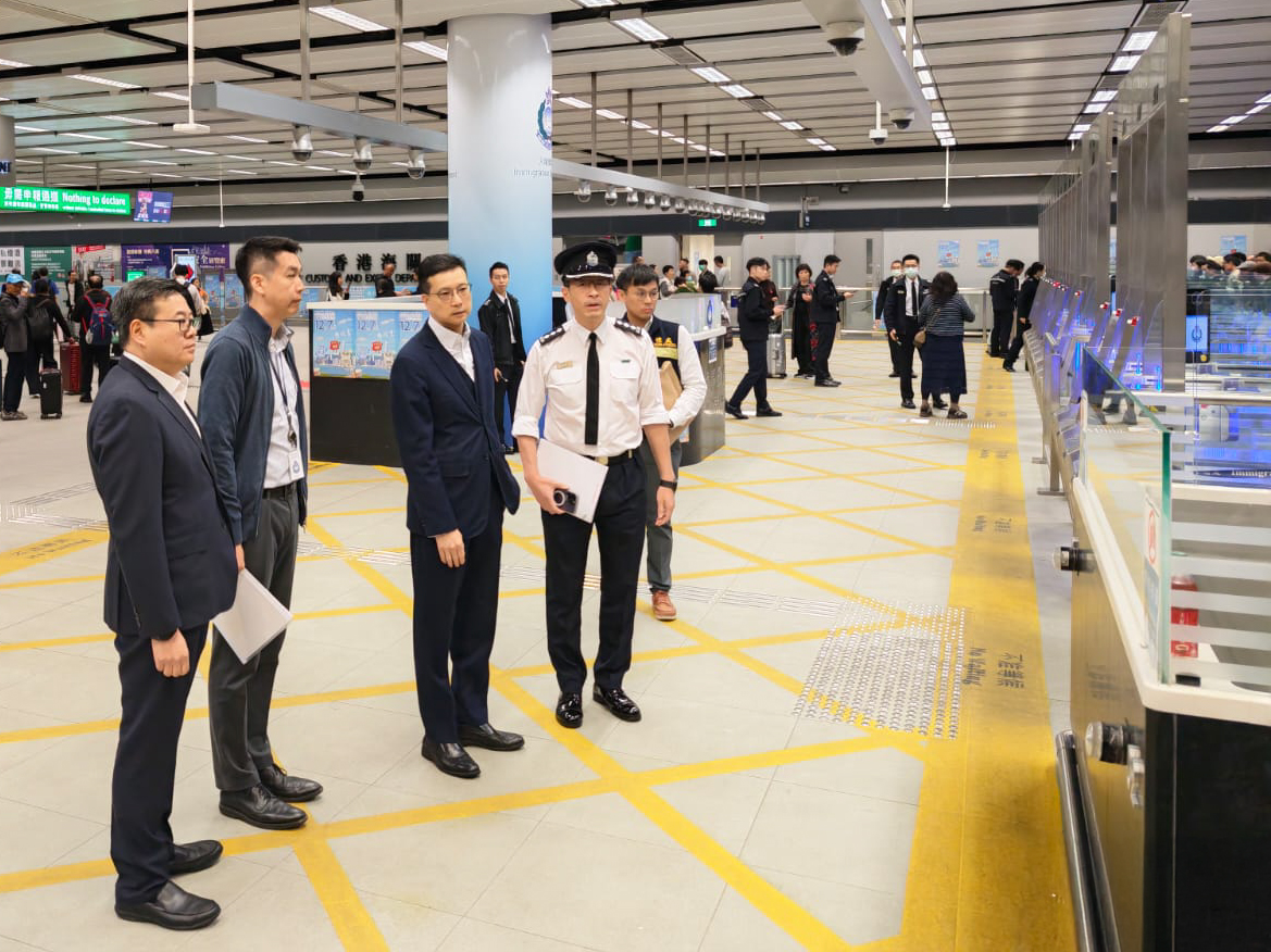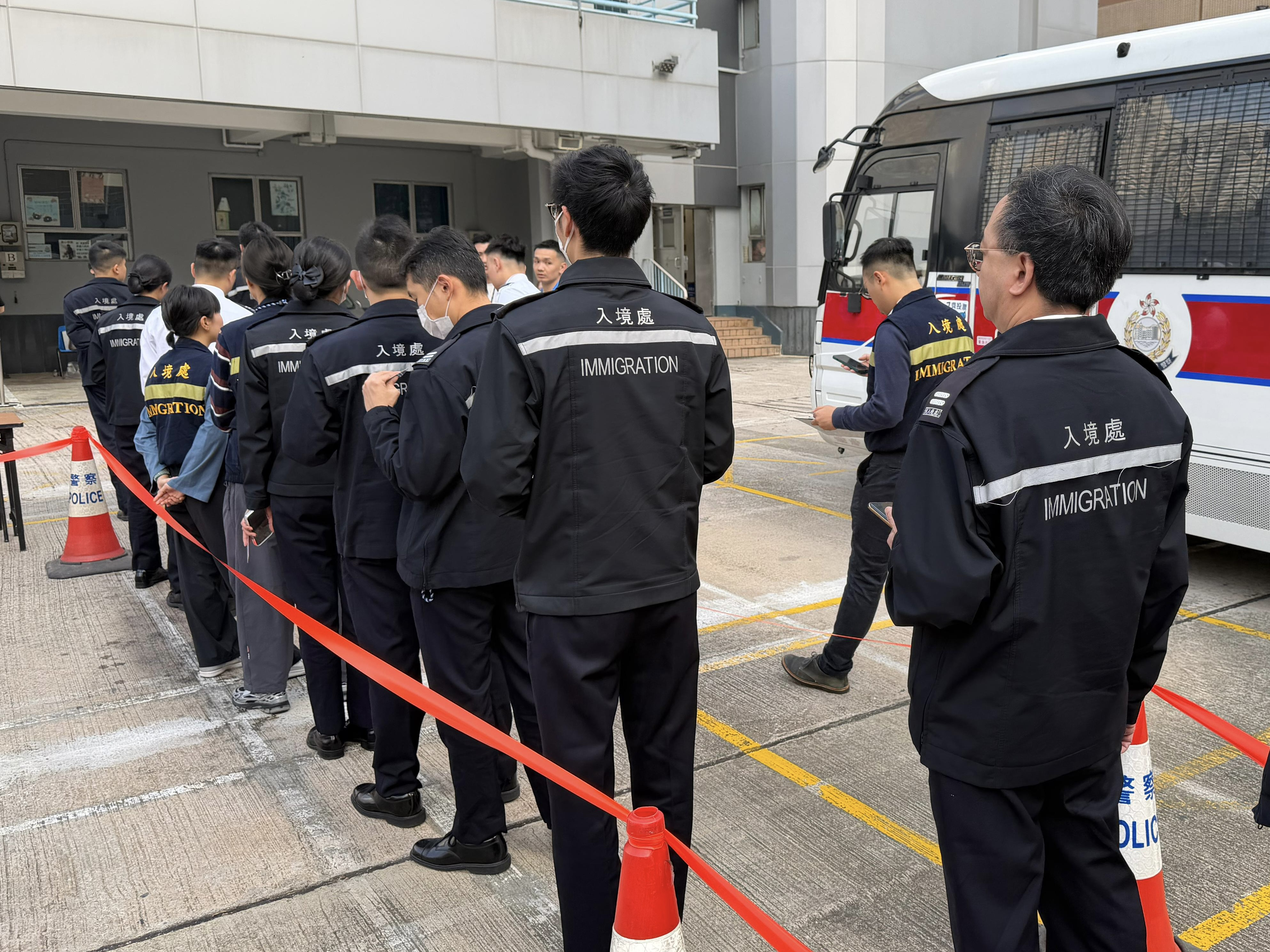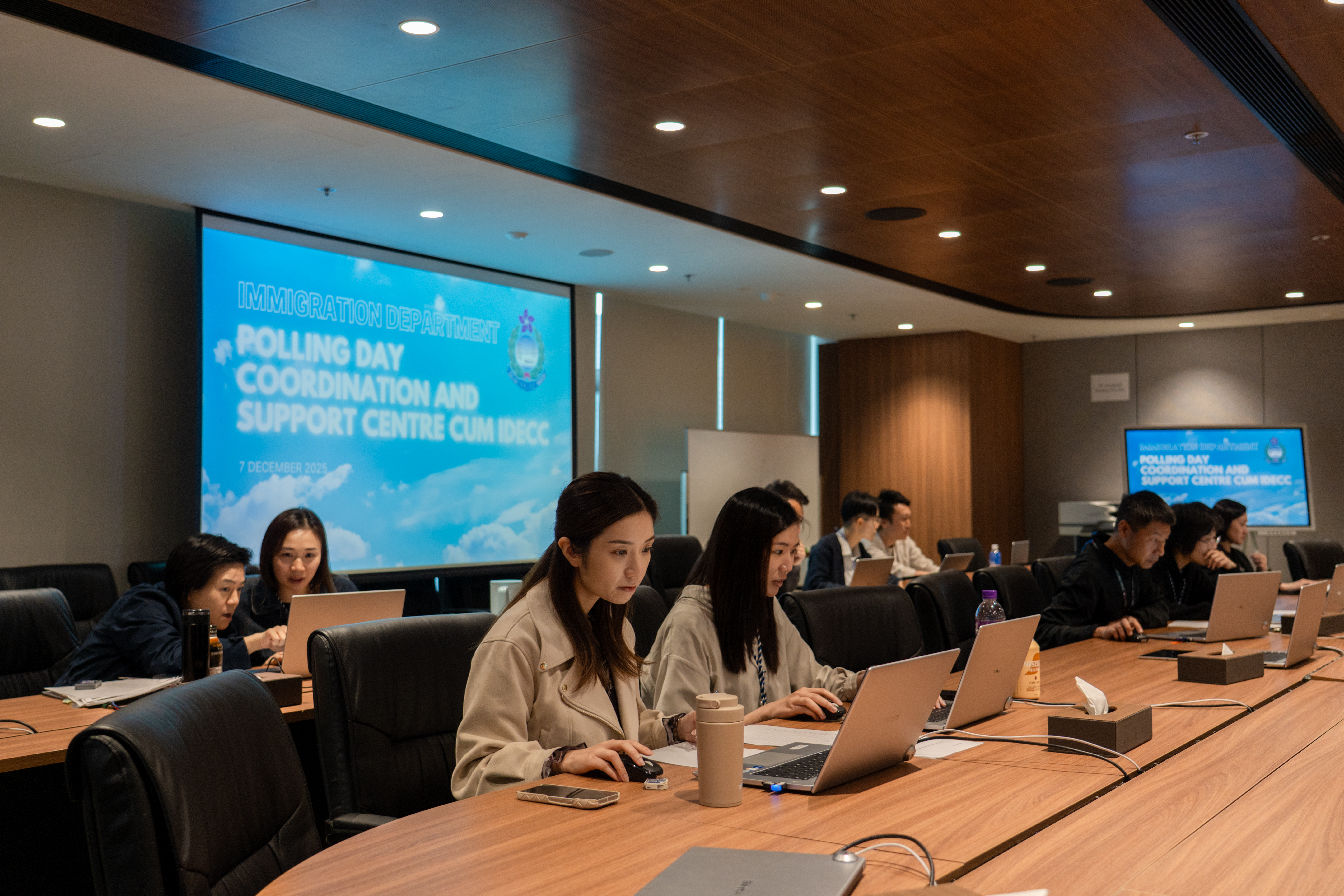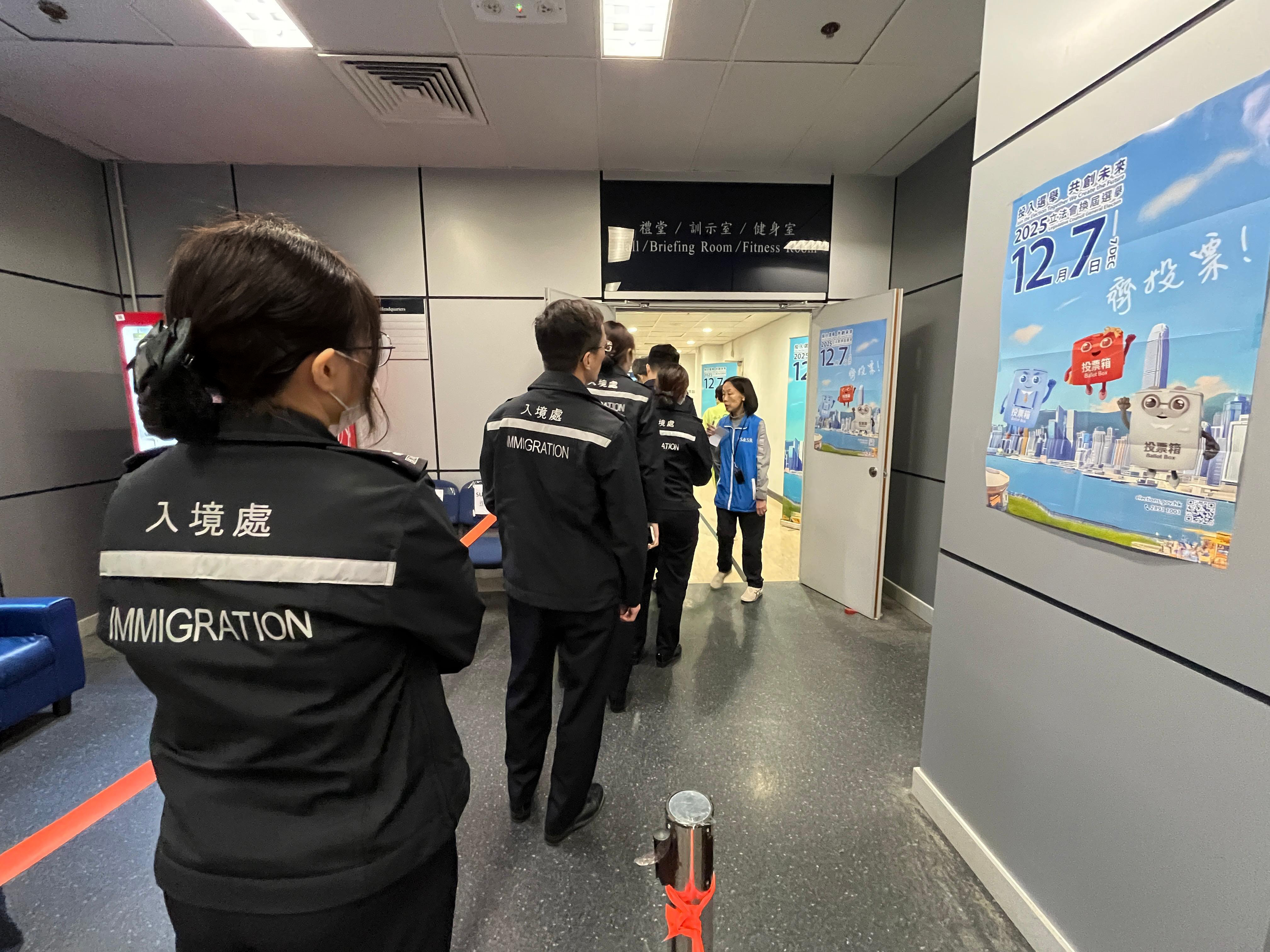 同一時間,程副處長(管制、簽證及證件)亦於投票後巡視各管制站,確保口岸運作高效順暢。入境處已在各口岸加派人手,並在有需要時加開檢查櫃檯及通道,讓從內地返港的選民能夠順利投票。程副處長也在場聽取管制站主管講解值班同事的投票安排,確保每一位同事都能夠參與這次選舉。