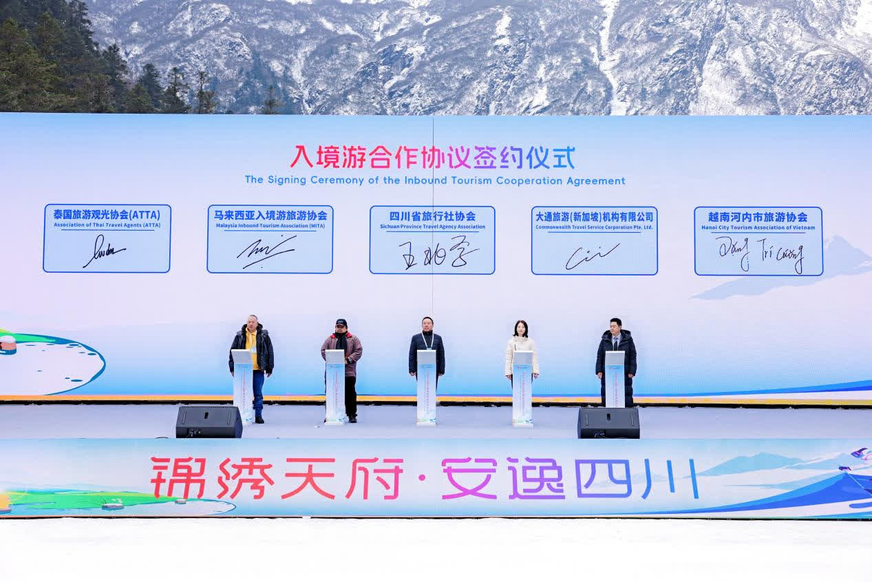 新加坡、泰國、馬來西亞、越南旅行商協會與四川省旅行社協會共同簽署入境遊合作協議,推動更多遊客跨越山海而來。巴蜀文化旅遊走廊冰雪旅遊聯盟也正式成立,構建冰雪旅遊「川渝共建、全域聯動」發展格局,共同打響「南方冰雪遊首選地」。