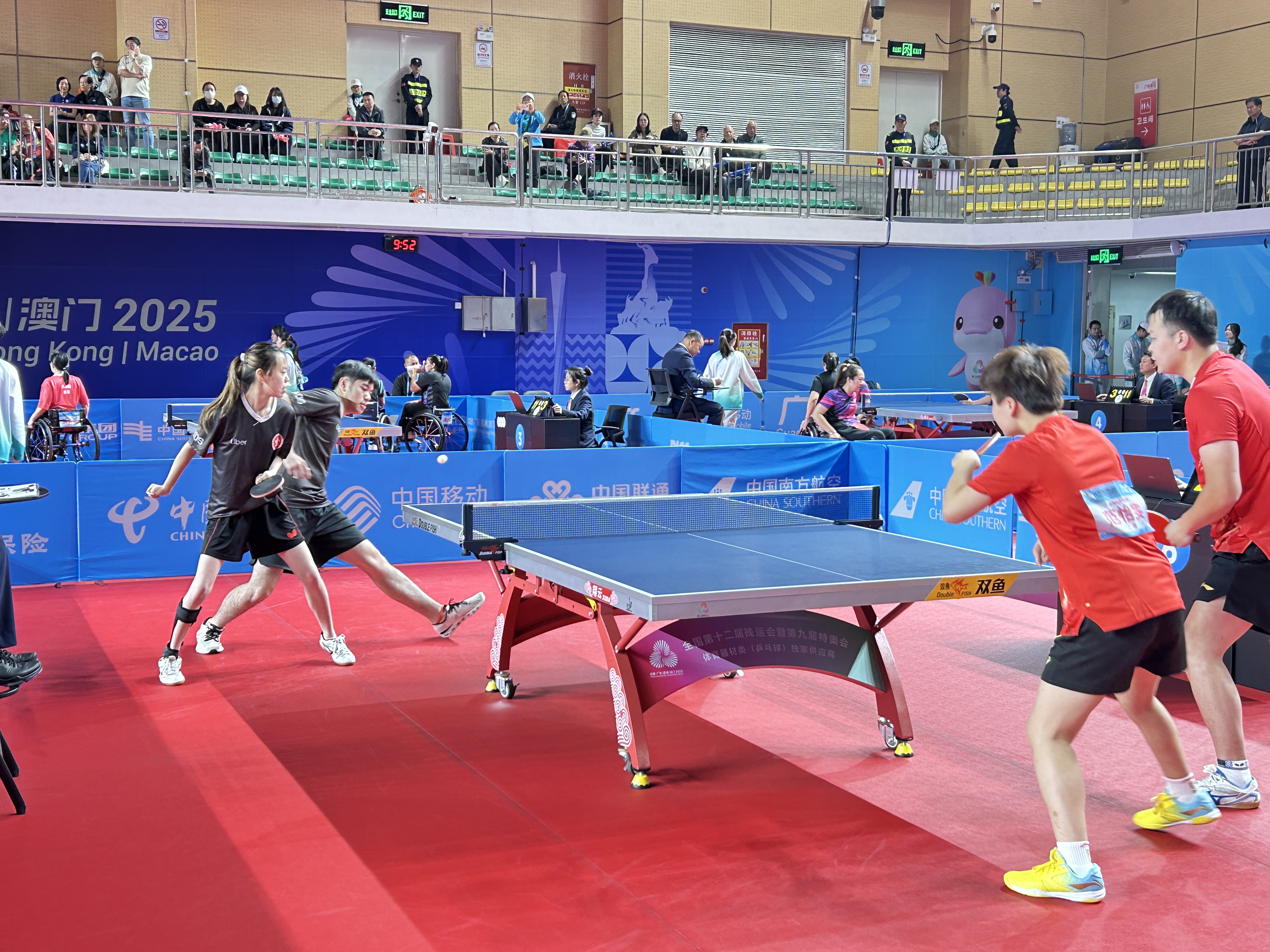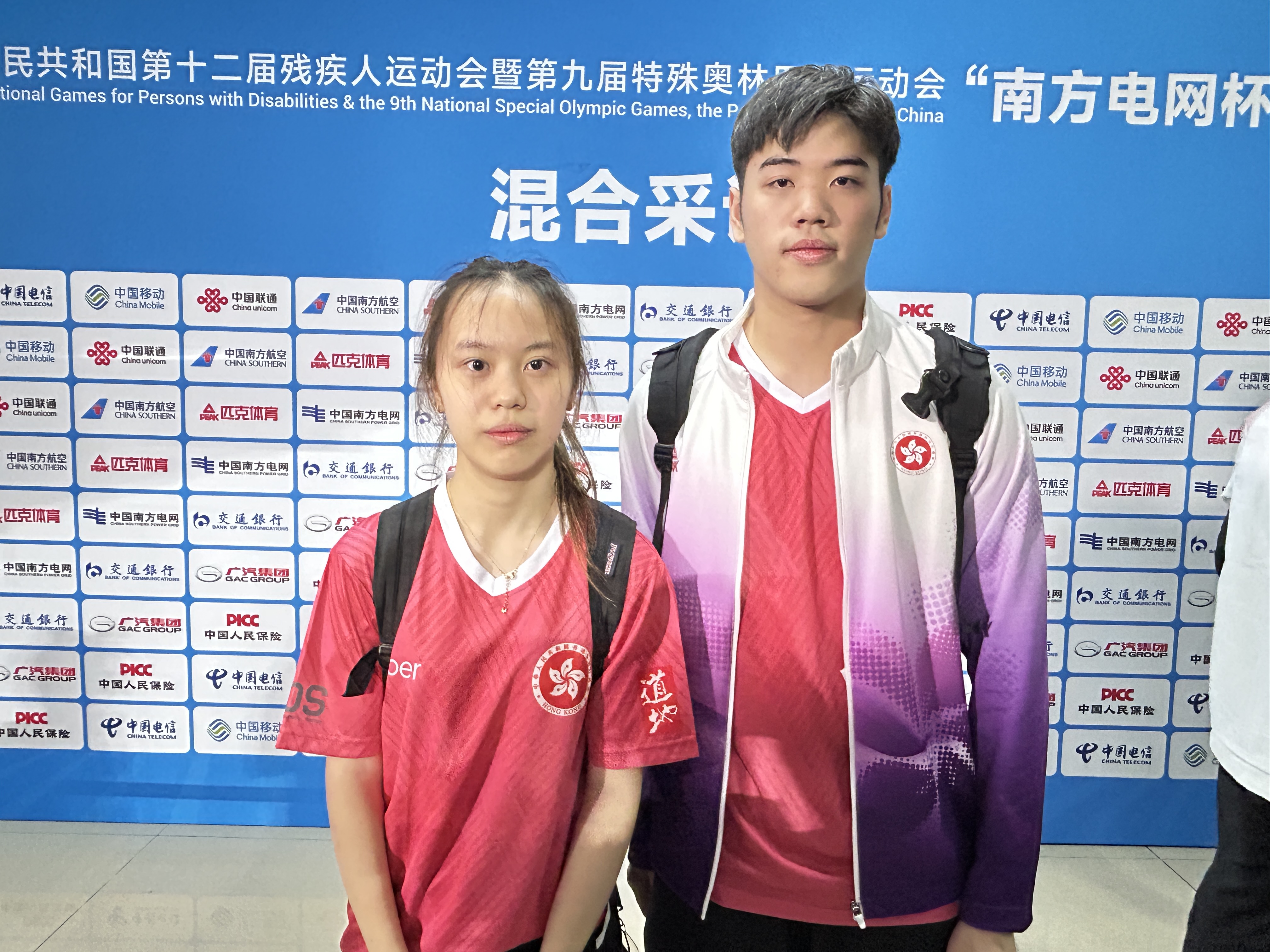 (大公文匯網 記者 敖敏輝 廣州報道)12月9日,全國第十二屆殘疾人運動會暨第九屆特殊奧林匹克運動會(下稱「殘特奧會」)乒乓球比賽迎來第五個比賽日,繼此前贏得兩枚團體項目銀牌後,香港代表隊再迎來好消息。在當日上午舉行的XD14混合雙打決賽中,香港組合黃翰林/彭穎加苦戰5局,戰勝該項目頭號種子江蘇組合閆碩/范怡雯,奪得金牌。這不僅是本屆殘特奧會港隊在廣東賽區的首枚金牌,也是本屆殘運會(不含特奧會)香港代表團的第一枚競賽項目金牌。