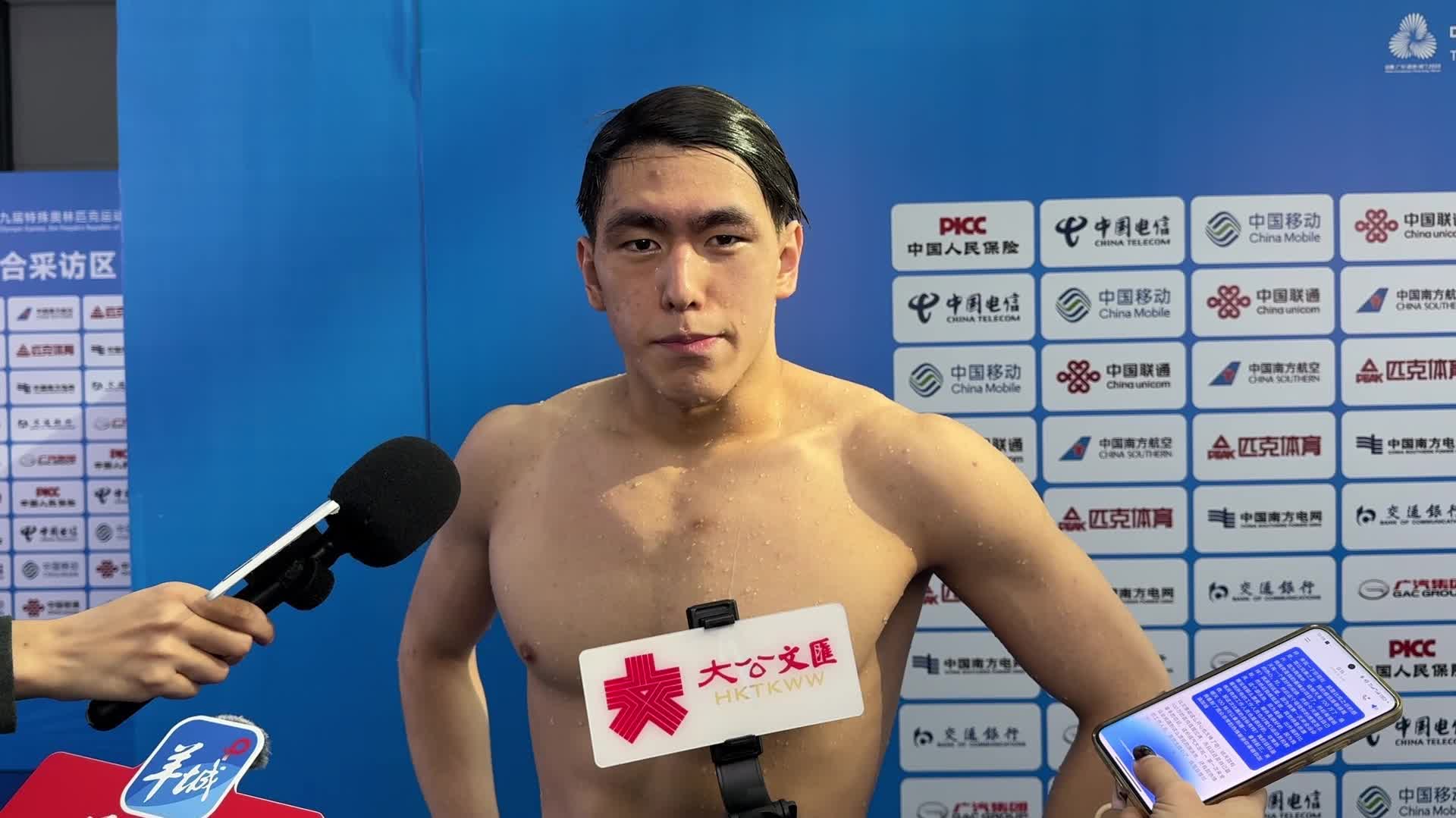 「看到第八道浙江隊選手游得真的好快,但對我自己的成績也很滿意!」賽後採訪中張浚諾表示,比賽前一個月開始參加殘特奧會的特訓準備,訓練得很辛苦:「這次是我第一次參加這種規模的大型賽事,成績已經突破自己,排名第二很不錯了。」