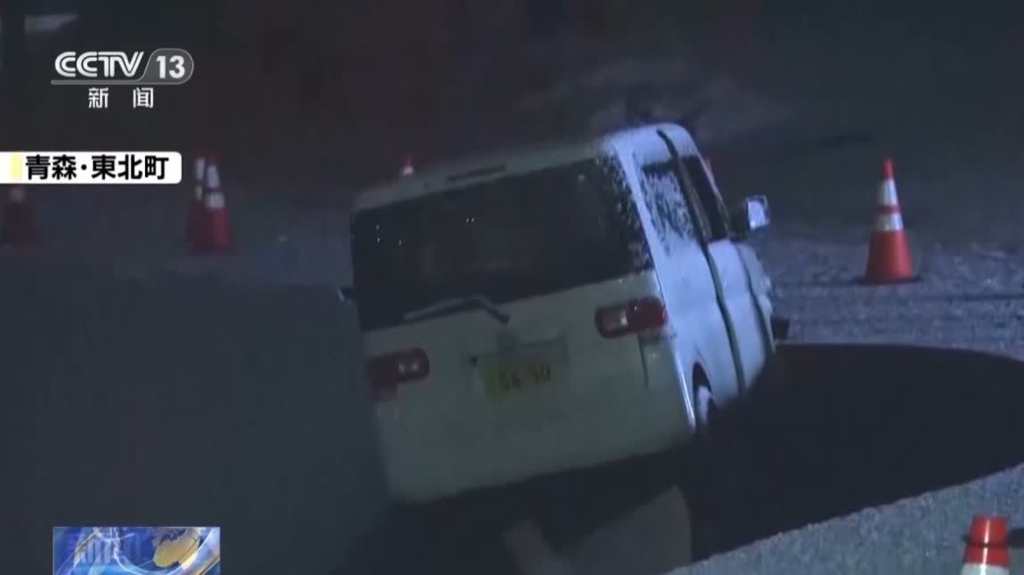 在青森縣,當地部分建築和道路受到地震影響:有建築因地震受損,墜落碎片砸中停在周邊的汽車,大量建築碎片散落在道路上。此外,當地有道路因地震坍塌,車輛被困在受損道路當中,交通被迫中斷。