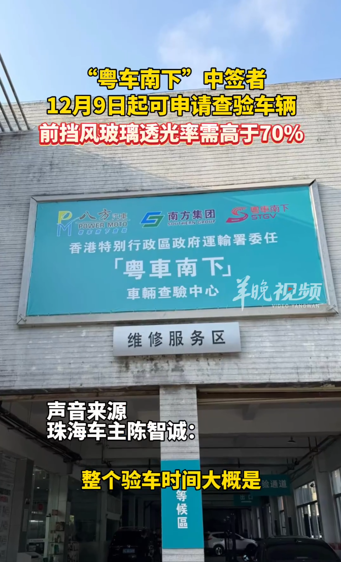 大公文匯全媒體報道,備受關注的「粵車南下」駛入香港市區政策將於12月23日正式實施,首批開放廣州、珠海、江門、中山4個城市。首批中籤車主於昨日(9日)起可前往廣東省13個車輛查驗點驗車。有內地媒體走訪報道指,查驗項目涵蓋車輛尺寸、警示燈、制動系統等,特別重點檢測前擋風玻璃透光率是否達到70%,以及禁止「智駕系統」及「遙控泊車系統」在香港境內使用。