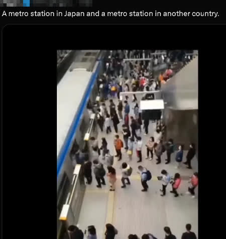 事實上,這種「地點誤標」並非首次出現。今年年初,一段拍攝地鐵站乘客上下車井然有序的視頻在TikTok上走紅,許多外國用戶紛紛留言稱讚「日本人的」秩序感,卻未意識到畫面拍攝地並非日本。