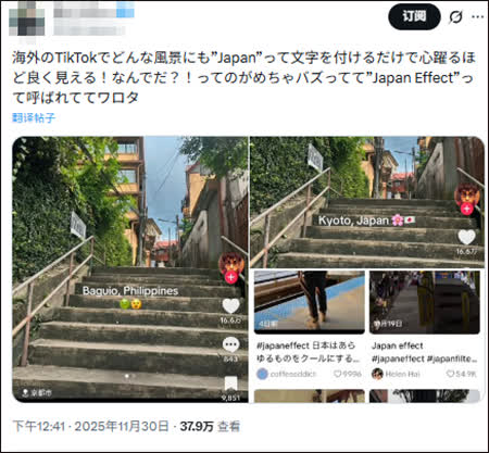TikTok平台數據顯示,這波熱度自11月中旬開始發酵,至12月初累計互動量已超過1300萬次,很多網民稱部分帖子正是被錯誤地標記為「東京」、「日本」才獲得大量傳播。