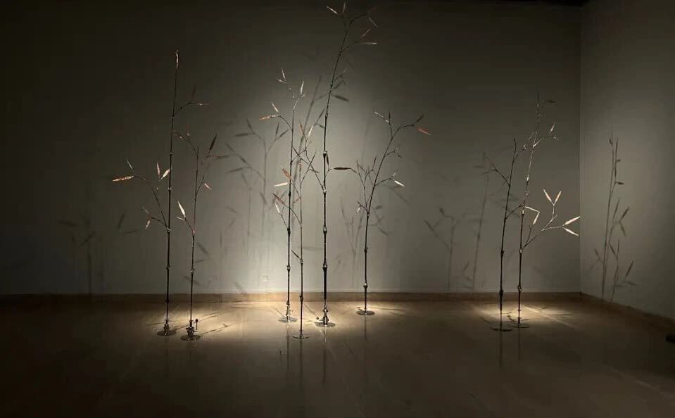 展覽的三個單元構成一個多層次的視覺敘事。「園語重構」致力於語境轉換,藝術家們以多元媒介重新詮釋園景、亭台、池魚和石意等園林元素,將移步換景和遊觀之趣轉化為視覺與空間的敘事實驗,激活深藏於東方美學中的宇宙觀和生命感。「竹格新解」聚焦於竹文化的當代轉譯,藝術家們深入其「清新、有節、韌直」的精神內核,通過解構與再造,不僅延續了其作為古典象徵的傳統品格,更賦予它屬於21世紀的視覺語義。「共生造境」着眼於竹與園的交融共生,藝術家們創造出竹石相依、窗廊掩映的意境現場,使竹成為與空間、光影交織的活性媒介,讓園林演變為一個可生長、呼吸的有機體。