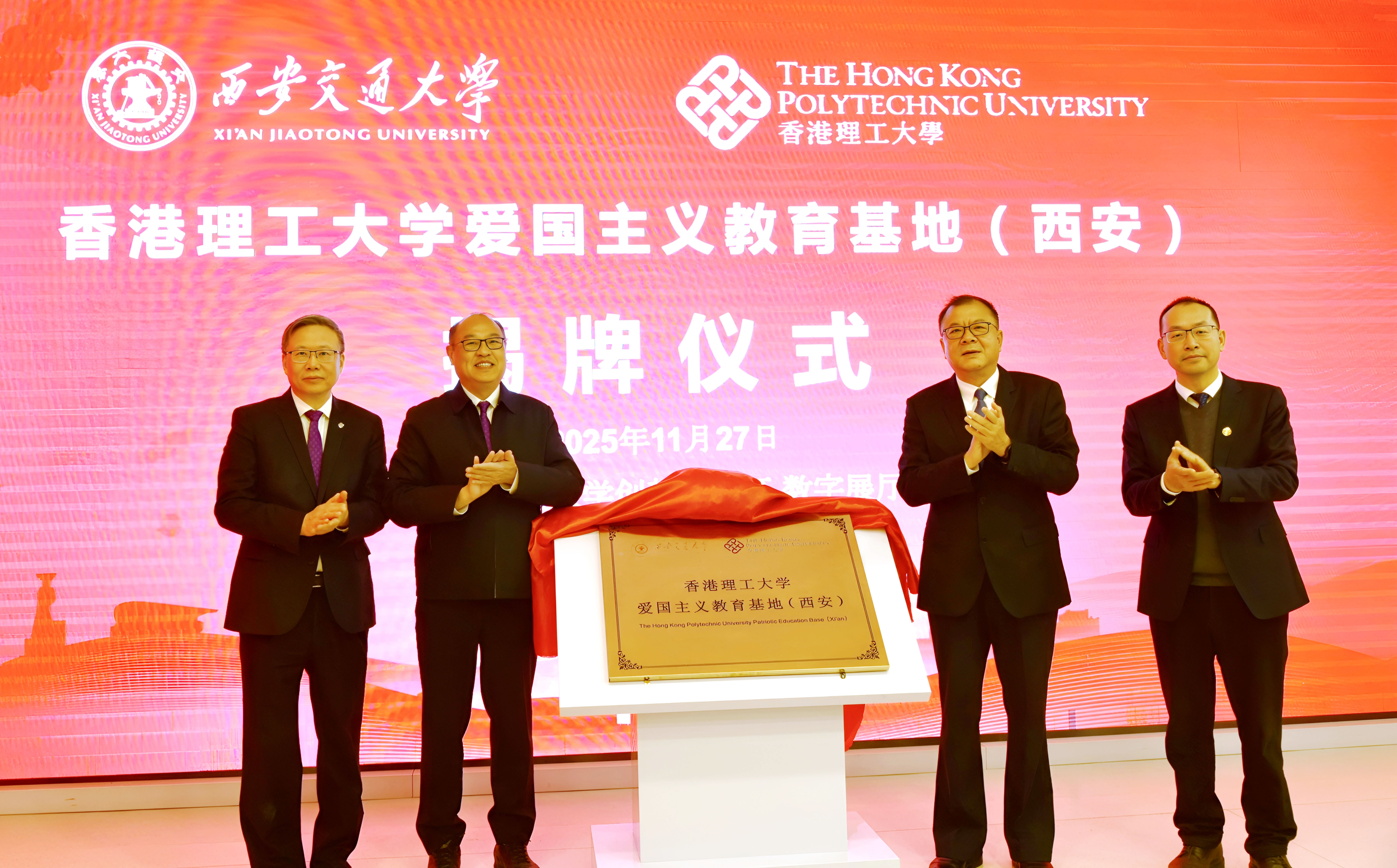 在香港理工大學愛國主義教育基地(西安)揭牌前一日,香港理工大學與西安交通大學在西安簽署愛國主義教育基地(西安)合作備忘錄。西安交通大學校長張立群表示,西安交通大學與香港理工大學多年來在人才培養、科研創新等領域進行了深度合作。此次香港理工大學愛國主義教育基地(西安)的建立,是深化兩校合作的又一重要里程碑,標誌着雙方在落實立德樹人根本任務上邁出了堅實步伐。愛國主義教育基地將引導學子深刻認識國情世情,錘煉過硬本領,培養國際視野,早日成長為堪當民族復興大任的棟樑之才。
