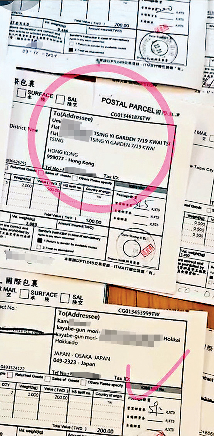 她聲稱客人來自世界各地,除了台北外,遠至香港、澳洲等,都有客源。為加強說服力,她刻意「晒出」兩張香港訂貨單,收貨地址清楚可見,其中一名買家居於葵青區一個私人屋苑。