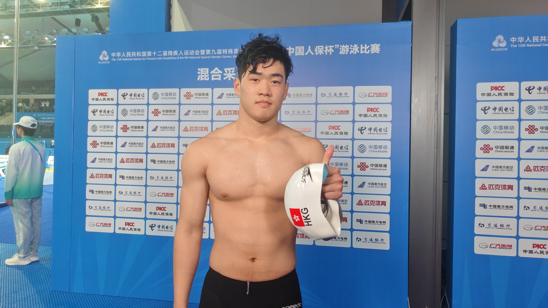 (大公文匯網 記者 石華、胡永愛、李薇)12月10日晚舉行的男子100米蛙泳SB14級決賽中,香港隊蔡志強以1分12秒07的成績獲得銅牌。他表示,第一名是來自浙江隊的劉家銘,也是此前這個項目的全國紀錄保持者,此次還刷新了他自己的記錄,非常厲害,「所以我能超越自己就很好了。」蔡志強表示這次在深圳參加殘特奧會的經歷很特別也很好,之前有來深圳遊玩,但這次是第一次來深圳參加比賽。