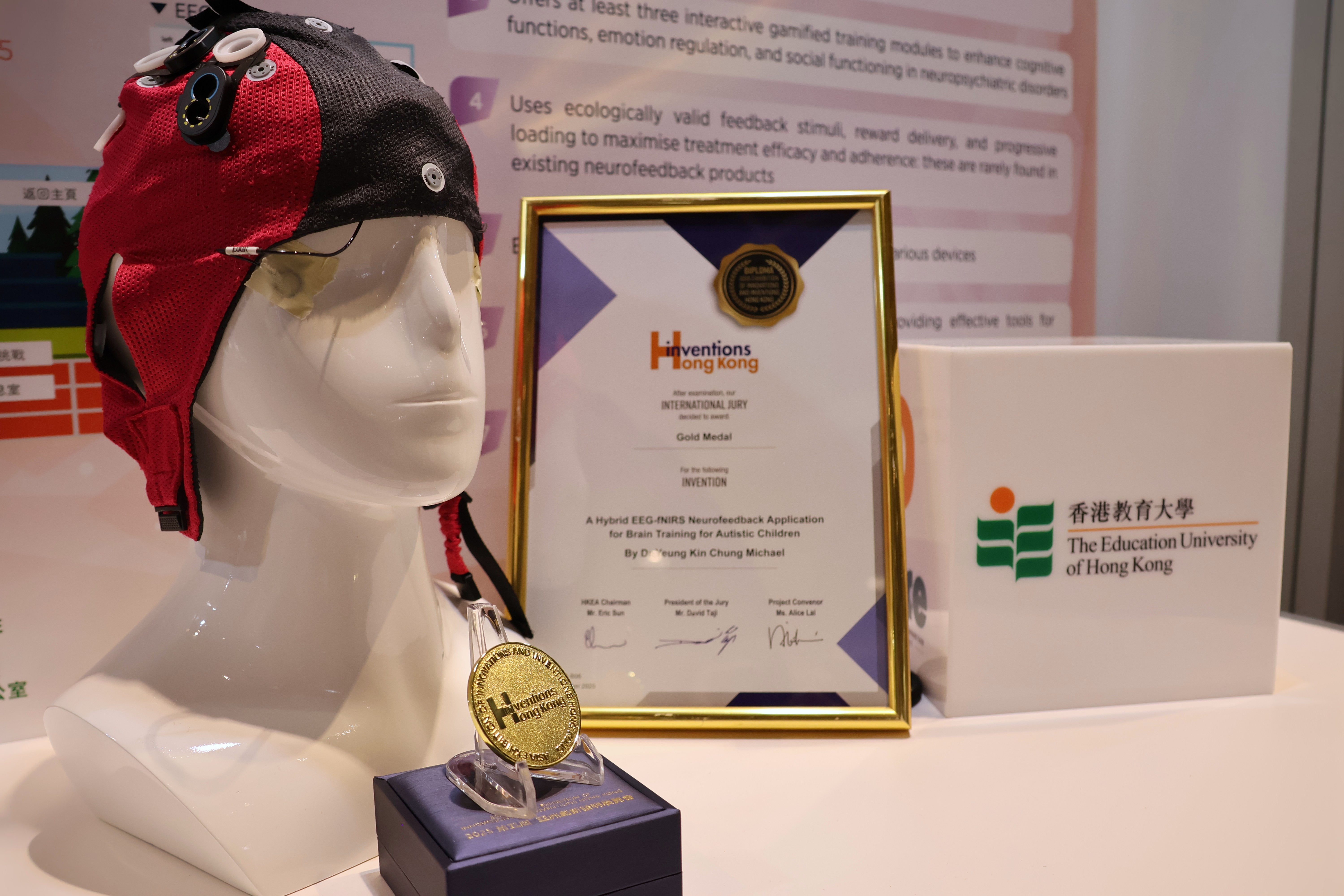 心理學系助理教授楊健忠博士研發的「用於自閉症兒童大腦訓練的EEG-fNIRS神經反饋應用程式」亦榮獲金獎。它結合腦電圖(EEG)與功能性近紅外光譜(fNIRS)技術,為自閉症兒童提供多模態神經反饋訓練,有效提升治療效果與參與度。