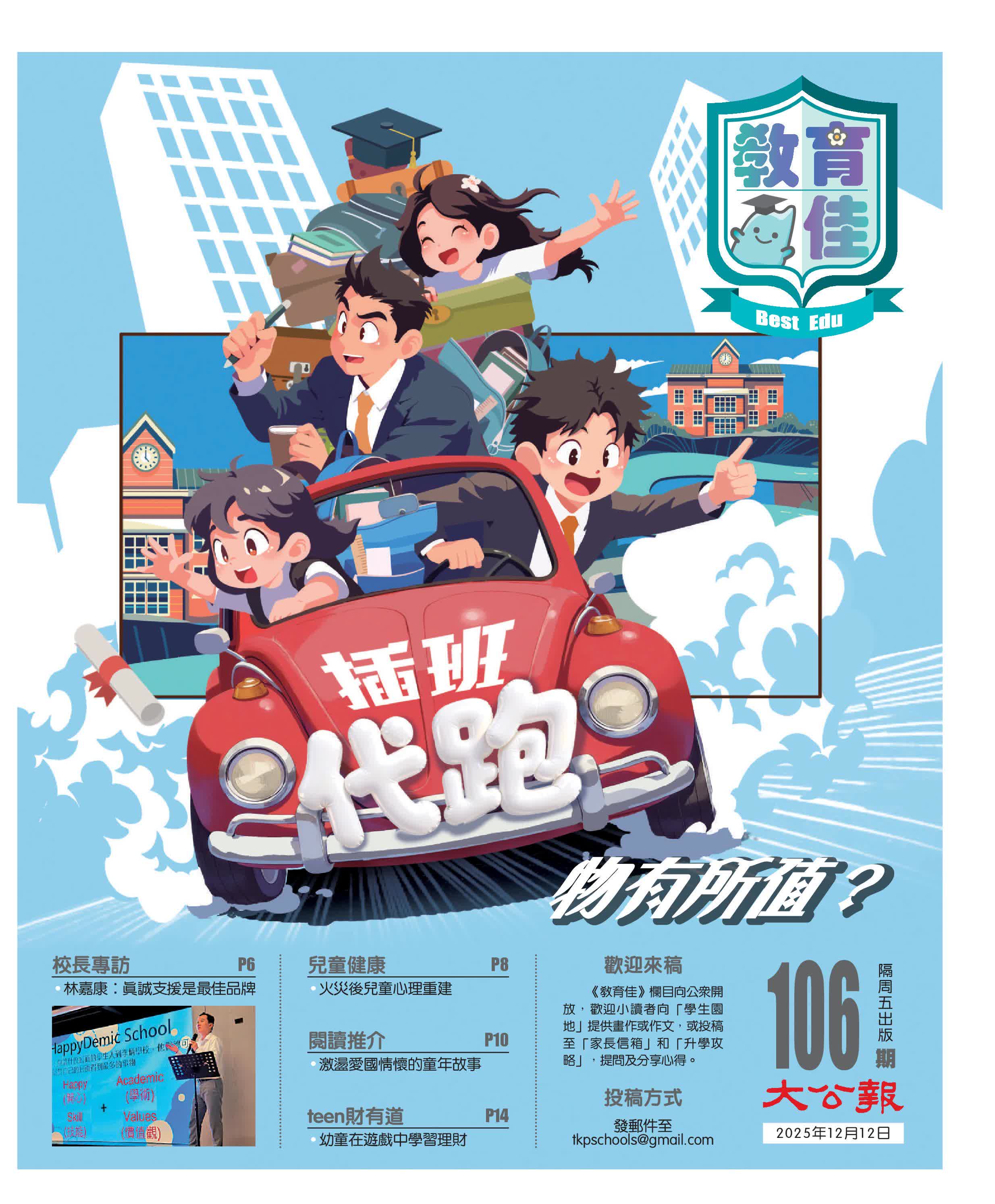 《教育佳》雜誌隔周五出版,為您帶來最前沿的收生、育兒、教養資訊!踏入第106期,我們來談談「學校插班跑腿」的新行業。隨着各類人才計劃落地,加上內地與香港家庭數目上升,內地子女來港求學的需求有增無減。根據教育局最新數據顯示,小四及中三等「中間年級」的入學數字升幅逾三倍。