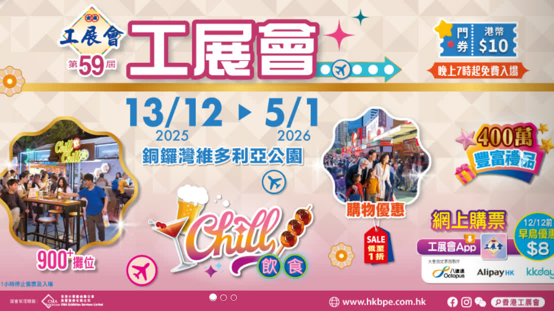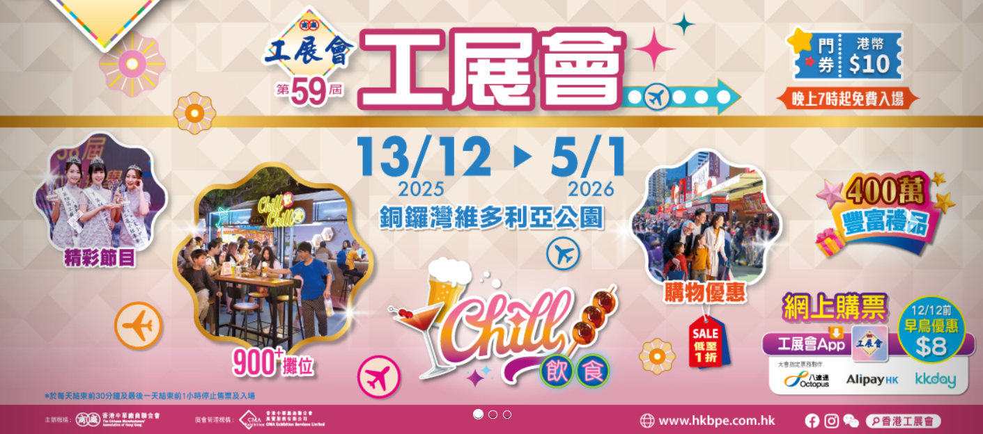 大公文匯全媒體報道,第59屆工展會將於明日(13日)至明年1月5日在維多利亞公園舉行,今次展會佔地約2.8萬平方米,並呈現12大展區超過900個戶外攤位,展區包括香港名牌廣場區、食品飲料區、糧油麵食區、參茸海味湯料區、生活家居區、家鄉風味區、樂齡活力區及推廣區等。警方今日(12日)表示,為配合工展會活動,將在銅鑼灣及天后一帶實施特別交通安排,呼籲市民如須前往道路管制地區,應盡量使用公共交通服務。