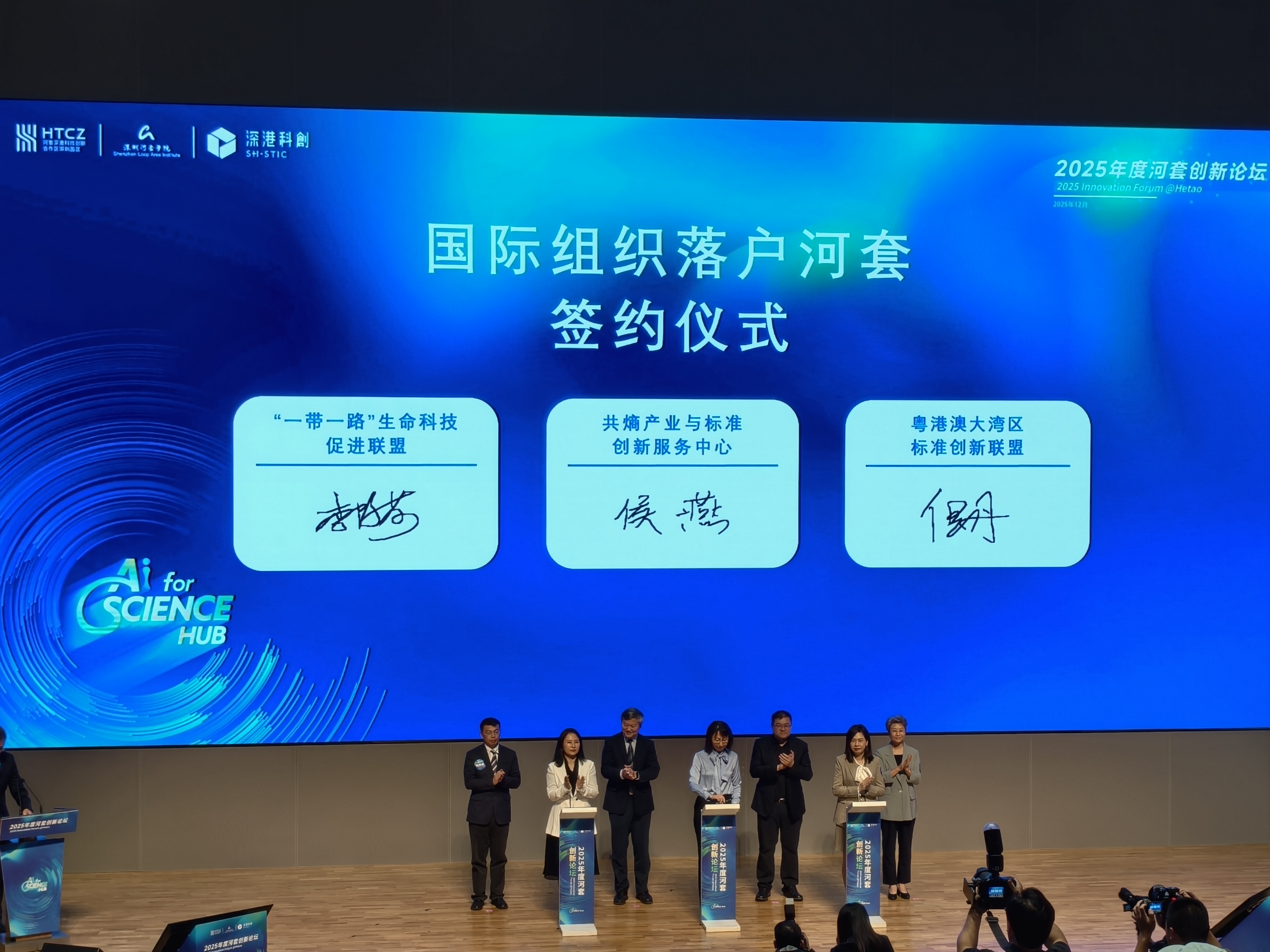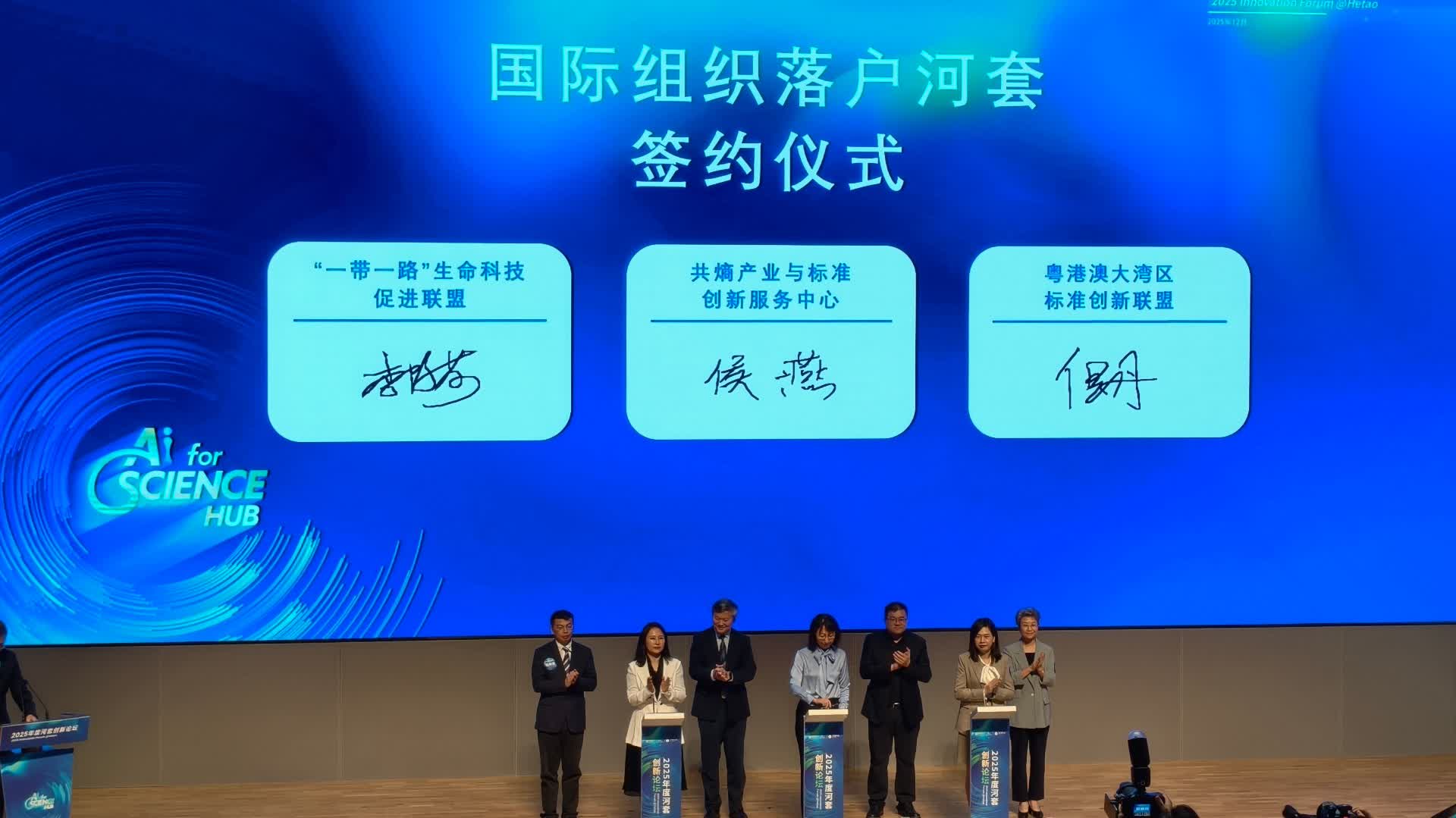 (大公文匯網記者 胡永愛)12月11日,2025年度河套創新論壇現場,新一批國際組織及期刊落地及簽約儀式舉行。「一帶一路」生命科技促進聯盟、粵港澳大灣區標準創新聯盟兩家重要的國際組織與共熵產業與標準創新服務中心(河套「1+6」國際產業與標準組織聚集區的核心服務平台)簽約,正式落地河套深圳園區,將進一步助力河套打造國際科技組織聚集區。