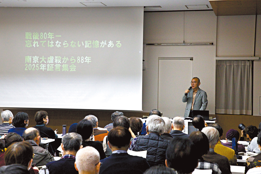 今年是南京大屠殺慘案發生88周年,今年12月13日是第十二個南京大屠殺死難者國家公祭日。11日晚,東京全水道會館的大講堂裏,上百名參與者通過證詞與影像記錄,重新面對那段戰爭慘劇。