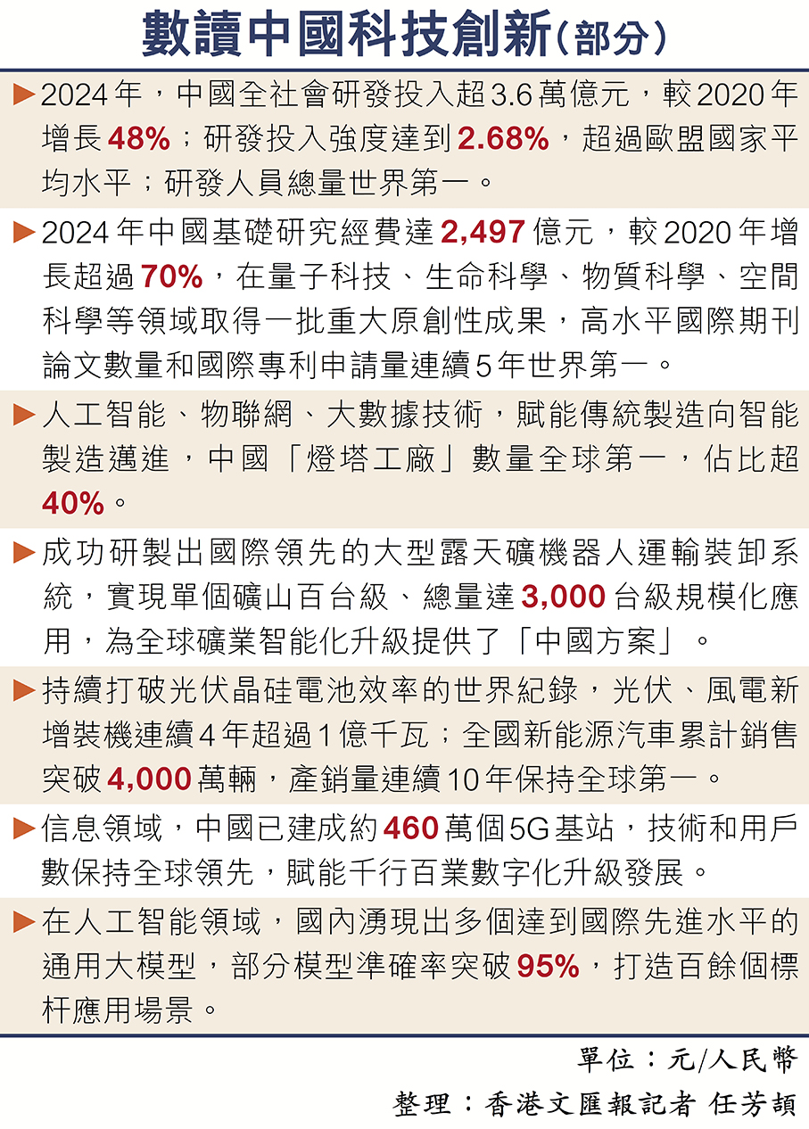 劉英分析指出,北京以原始創新築牢「源頭活水」,扛起「從0到1」的突破使命。依託懷柔科學城4個已開放的大科學裝置,北京在「數字生命」等前沿領域持續突破,2024年研發投入強度連續第6年超6%,創新成果全國佔比超三成,讓440餘項高校成果高效賦能企業,夯實了國家創新的「硬科技」根基。