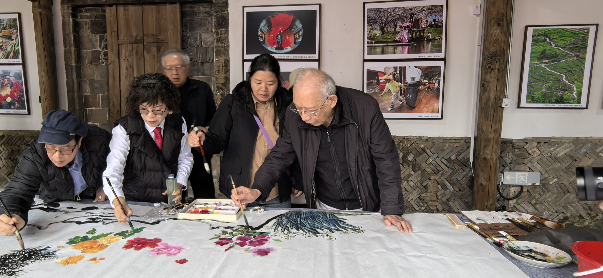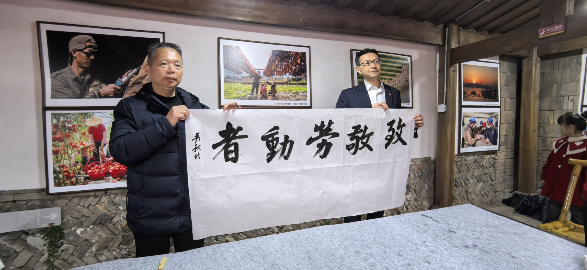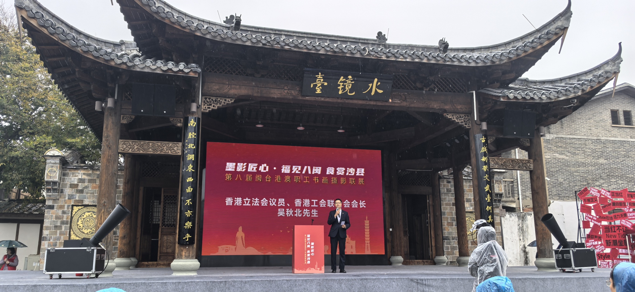 隨後,四地書畫名家即席揮毫,攜手創作六尺大幅國畫《盛世華開》,以藝術共鳴寓意富貴長春、吉祥和諧。吳秋北會長亦提筆寫下「致敬勞動者」五個蒼勁大字,以致敬所有平凡而偉大的奮鬥者。現場,香港東方書畫院院長梁君度為聞名遐邇的沙縣小吃即興題詩一首:「源溯中原千載長,扁肉拌麪萬家香。莫言小吃皆微物,味透鄉愁走四方。」將地方風物融入文化盛事,平添一縷人間煙火與鄉情滋味。