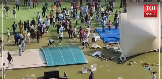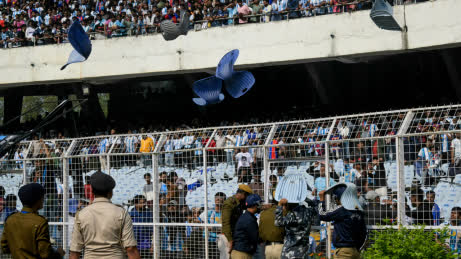NDTV說,美斯原計劃繞場一周,但也因現場局勢逐漸失控而未能完成計劃,僅停留大約20分鐘便離開,一些活動也提前結束。現場情況隨後變得愈發混亂,不少球迷扔瓶子、摔海報,震耳欲聾的噓聲響徹整個體育場。