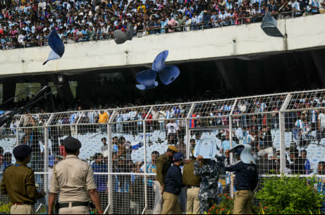 據印度新德里電視台(NDTV)、《印度斯坦時報》等印媒報道,阿根廷球星美斯當地時間13日到訪印度西孟加拉邦首府加爾各答鹽湖體育場參加活動,然而活動最終爆發騷亂,原因是不少球迷表示自己「花費昂貴票價甚至都沒看到美斯」。由此引發憤怒失望情緒,現場出現扔椅子、摔瓶子等行為。