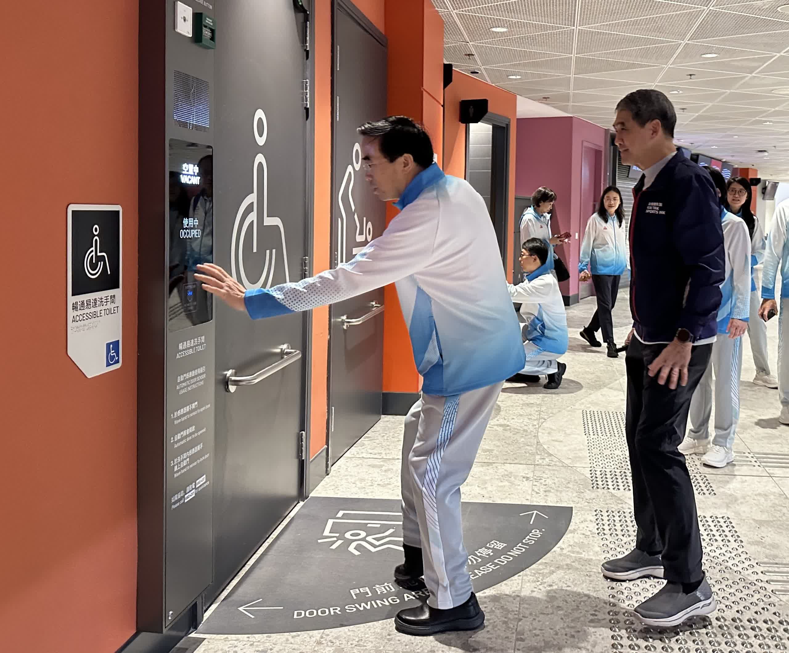 啟德體育園總監(策略發展)鄧竟成介紹園區無障礙設計及通達設施時表示︰「啟德體育園在設計規劃上充分考慮不同人士的多元需求,採用『通用設計』原則,設施不僅符合建築標準,更在多項配置上優於法定要求,致力提升暢達度及連貫性。」
