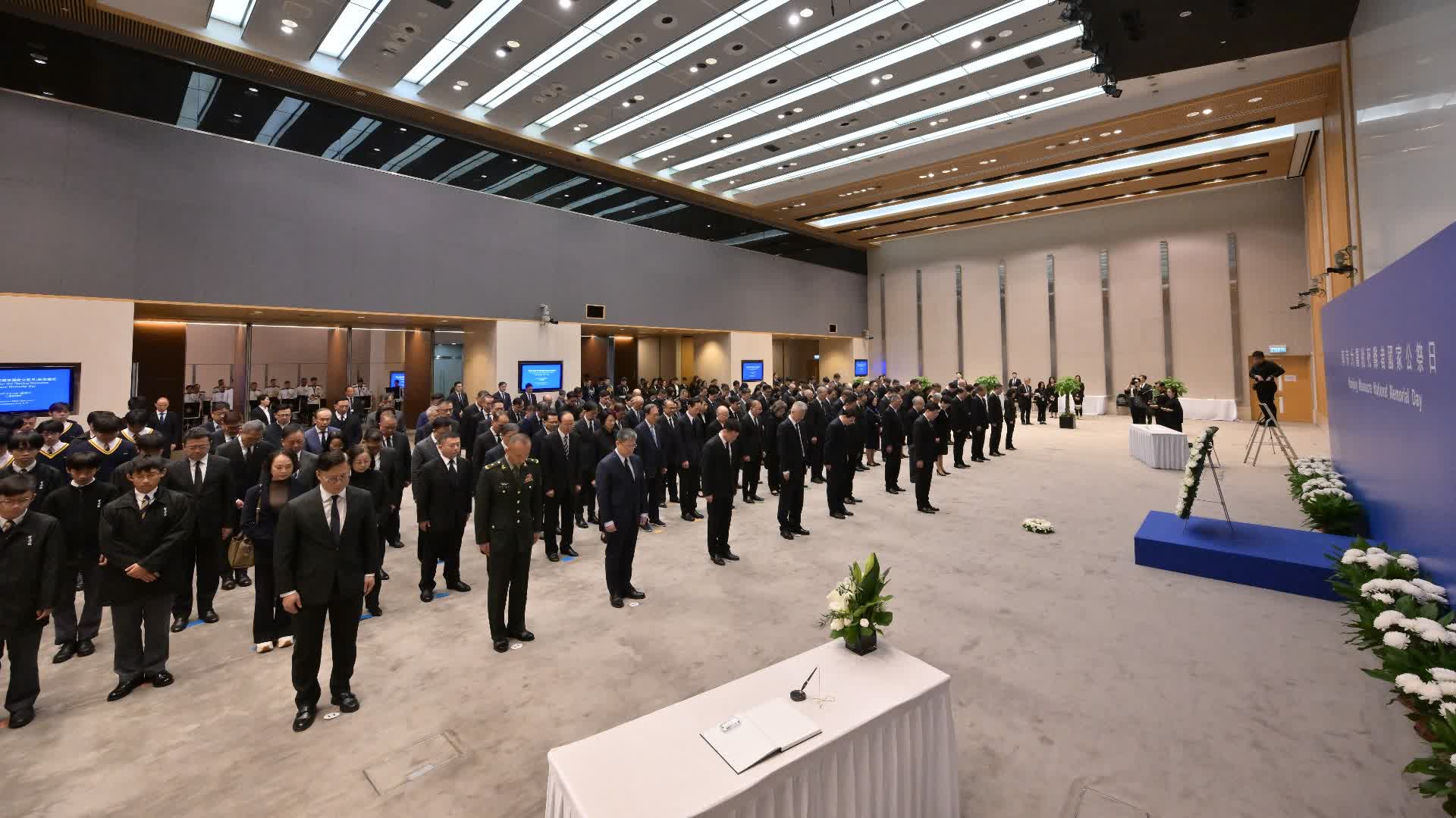 一九三七年十二月十三日,侵華日軍在中國南京展開長達六周的大屠殺,三十萬同胞慘遭殺戮。十二月十三日是南京大屠殺死難者國家公祭日,公務員事務局局長楊何蓓茵出席由特區政府舉辦的公祭儀式,與眾人一同默哀,悼念在這場慘絕人寰大屠殺中的死難同胞,緬懷為中國人民抗日戰爭勝利獻出生命的革命先烈和民族英雄。