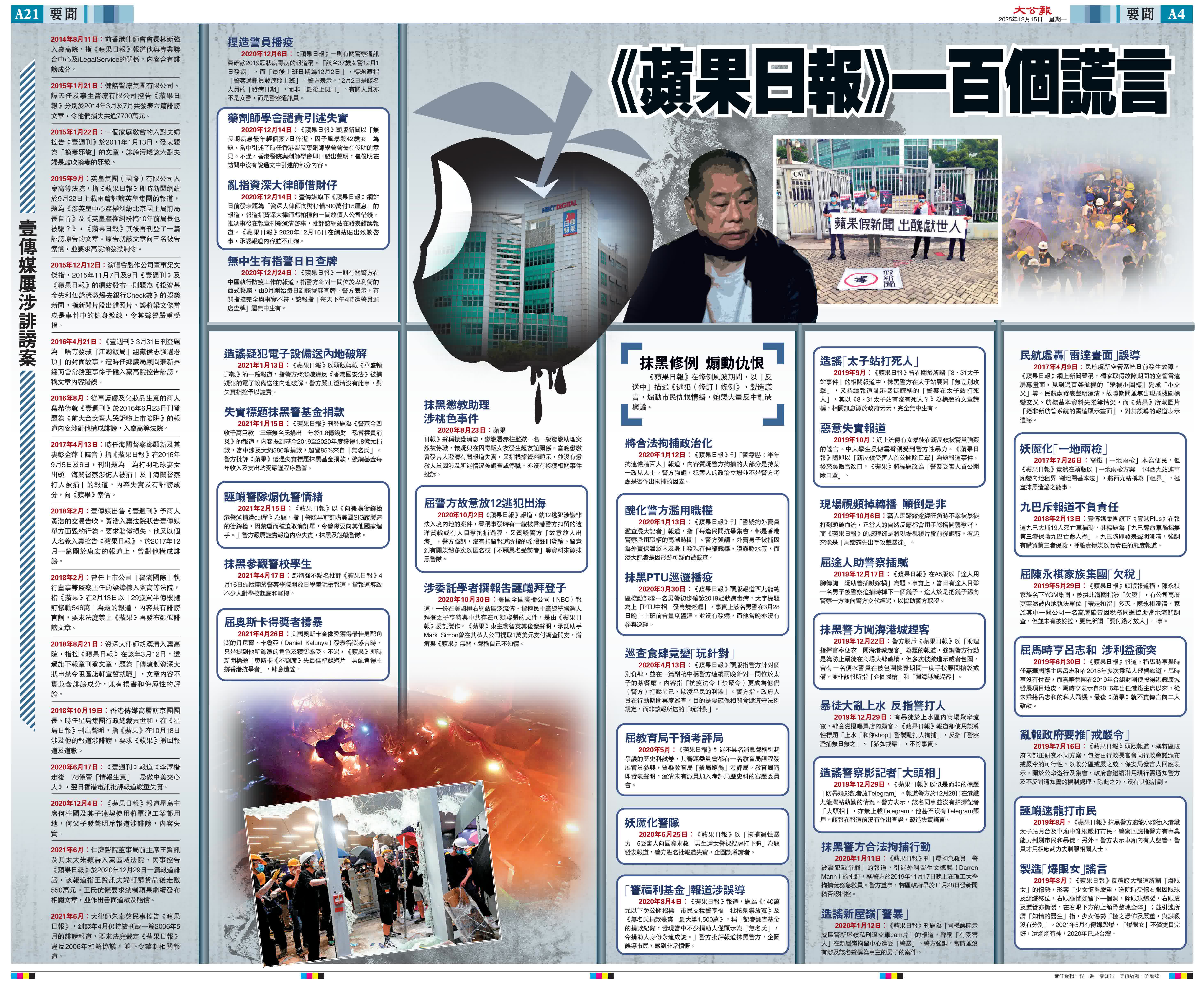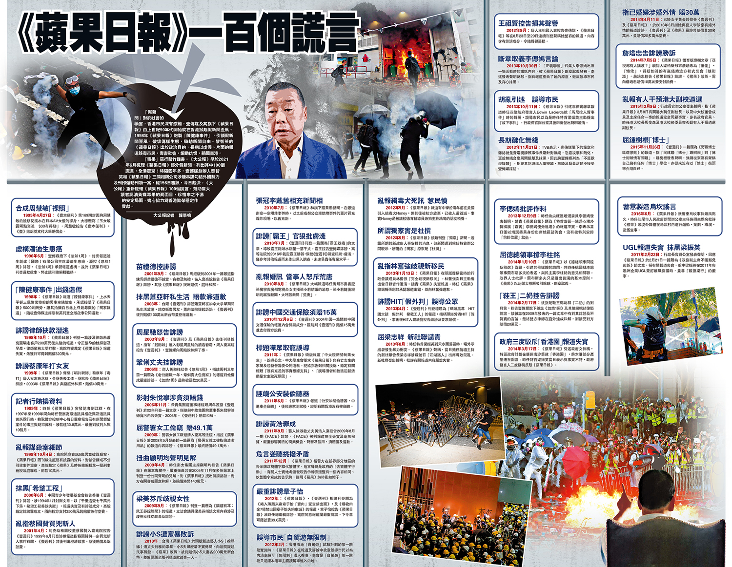 「毒果」惡行罄竹難書。《大公報》早於2021年6月梳理《蘋果日報》部分假新聞,列出其中100個謊言,全港震驚!時隔四年多,壹傳媒創辦人黎智英和《蘋果日報》三間相關公司涉嫌串謀勾結外國勢力及刊印煽動刊物一案,經156日審訊,今日裁決。《大公報》重新梳理《蘋果日報》100個謊言,幫助廣大讀者認清黃媒毒果的真面目,珍惜來之不易的安定局面,齊心協力為香港繁榮穩定作貢獻。