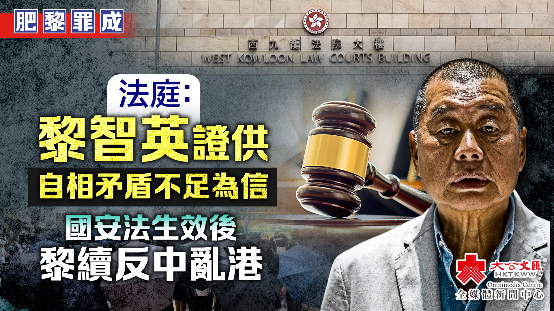 法庭單純考慮有關法律和案中證據 黎智英證供多處自相矛盾拒絕接納