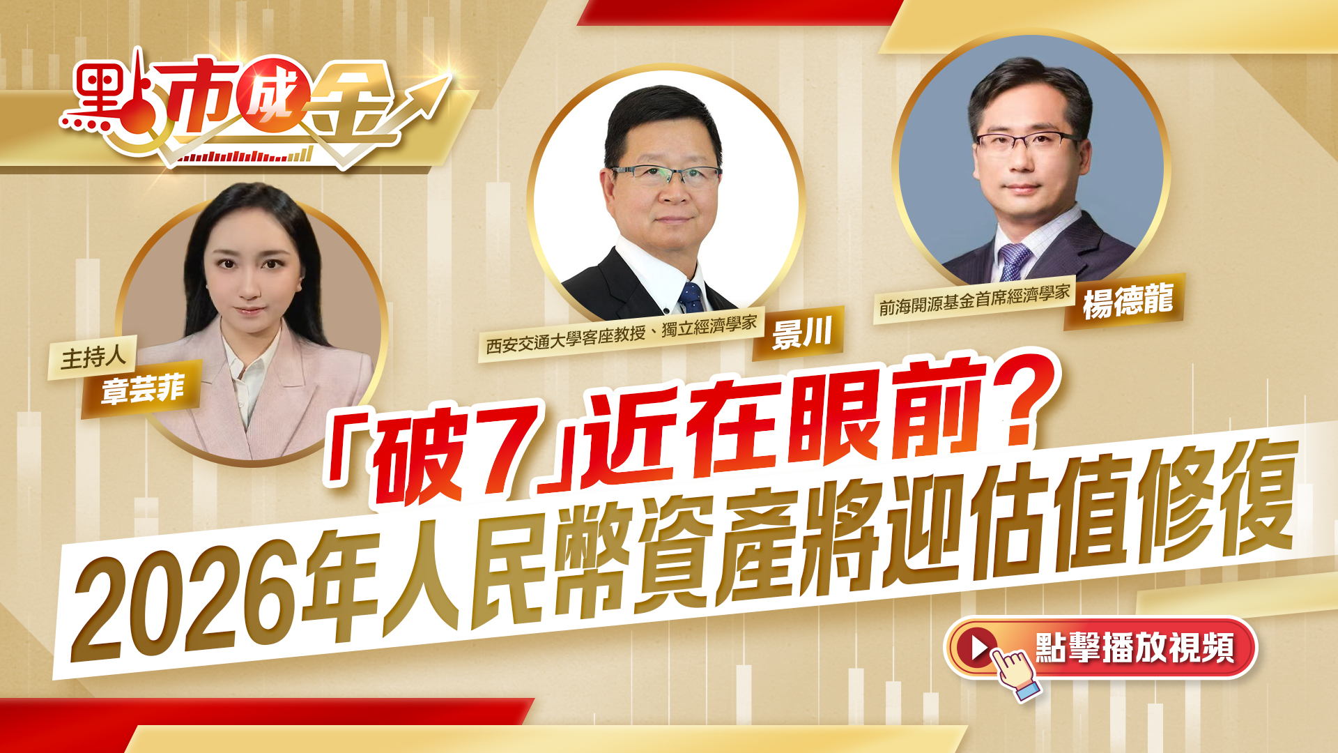 他進一步指,現時機構普遍預計「破7」大概率在2026年下半年,若國內財政加碼、地產企穩帶動經濟內生動能恢復,疊加美元周期下行、人民幣國際化推進,「破7」有望成為新的波動中樞,但若美國通脹反彈重啟加息或全球避險需求上升,時點可能延後。