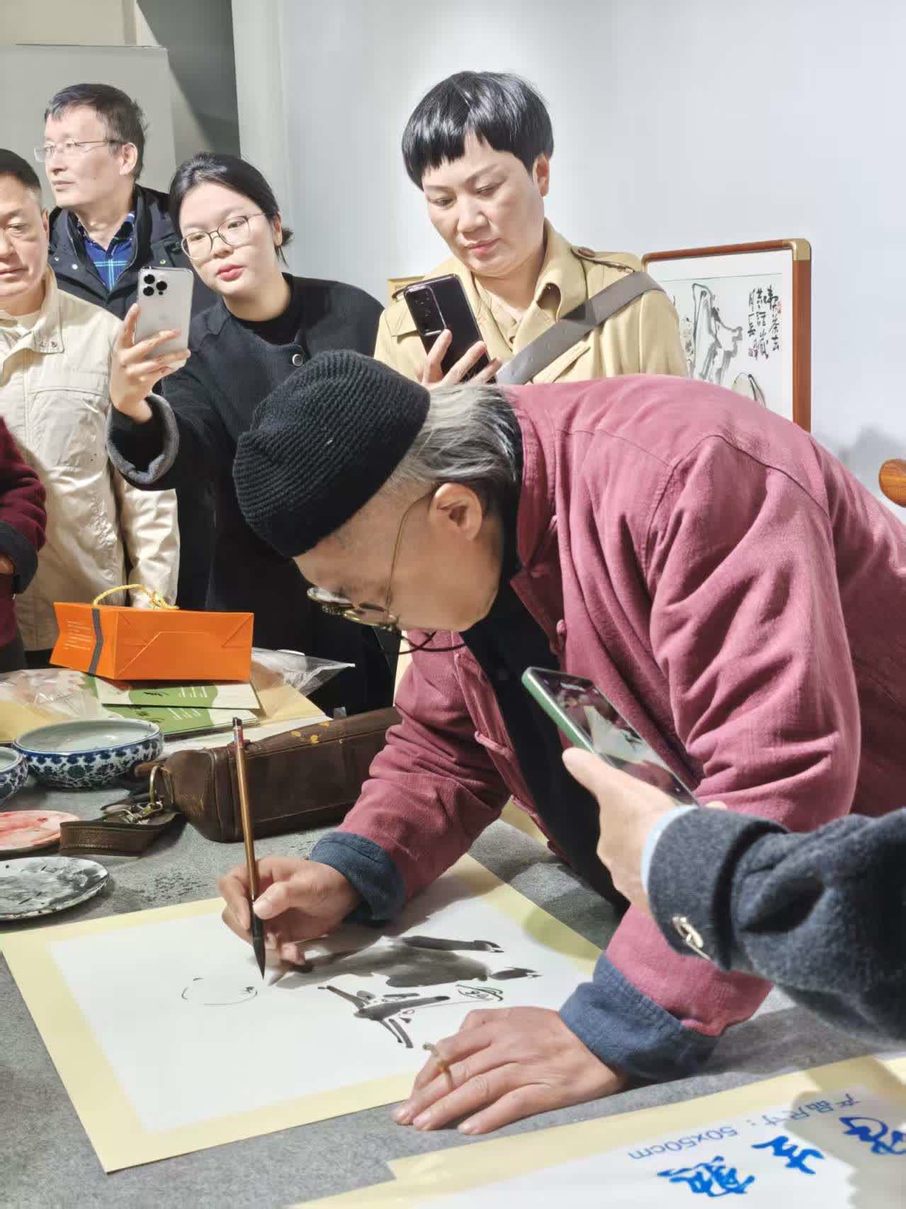 在筆繪現場,彭樹平一邊運筆,一邊與圍觀的觀眾輕聲交流創作心得。他談及兒時記憶如何成為不竭的靈感源泉,分享在宣紙與瓷坯上處理同一主題時的不同心境與技法考量。「藝術要能呼吸,有生活氣,」他說道,「現場畫,筆意更活,就像回到最初畫畫時那種純粹的狀態。」 觀眾得以近距離觀察大師的用筆、用墨與用色,親眼見證一幅充滿情感溫度的作品從無到有的誕生過程,感受藝術創作最本真的魅力。