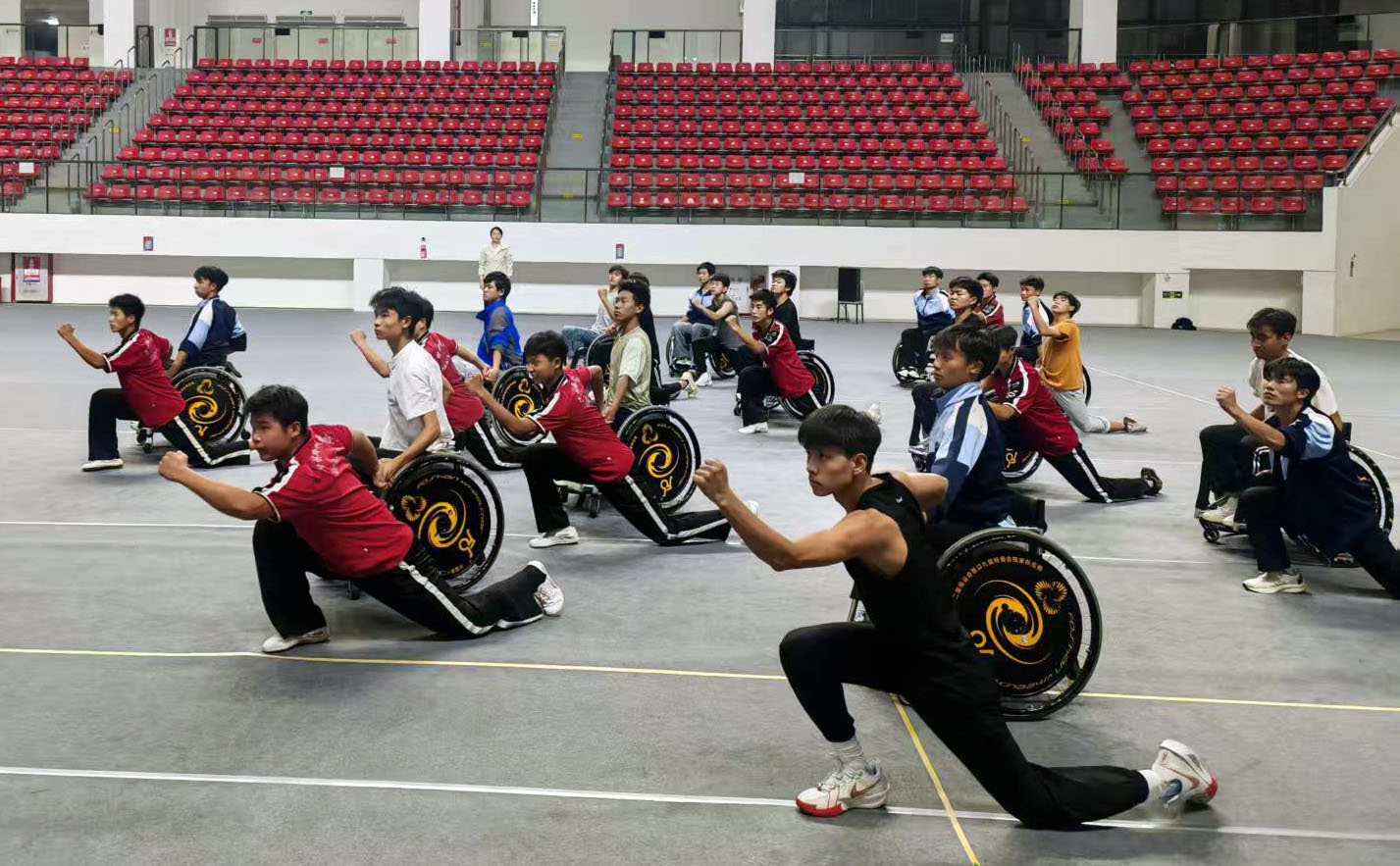 塔溝武校本次參演的91名學員均是從全國十五運閉幕式參演隊伍中精挑細選的骨幹力量。「此次排練難度遠超以往,最大的挑戰是與特殊演員的溝通協作。」塔溝武校教練孫景倫坦言,與聽障、盲人演員排練時,語言溝通不便、肢體配合節奏難統一等問題接踵而至,但學員們主動學習手語、耐心磨合動作,全程尊重、關愛特殊夥伴,最終憑藉團結一心的堅守攻克了所有難關。