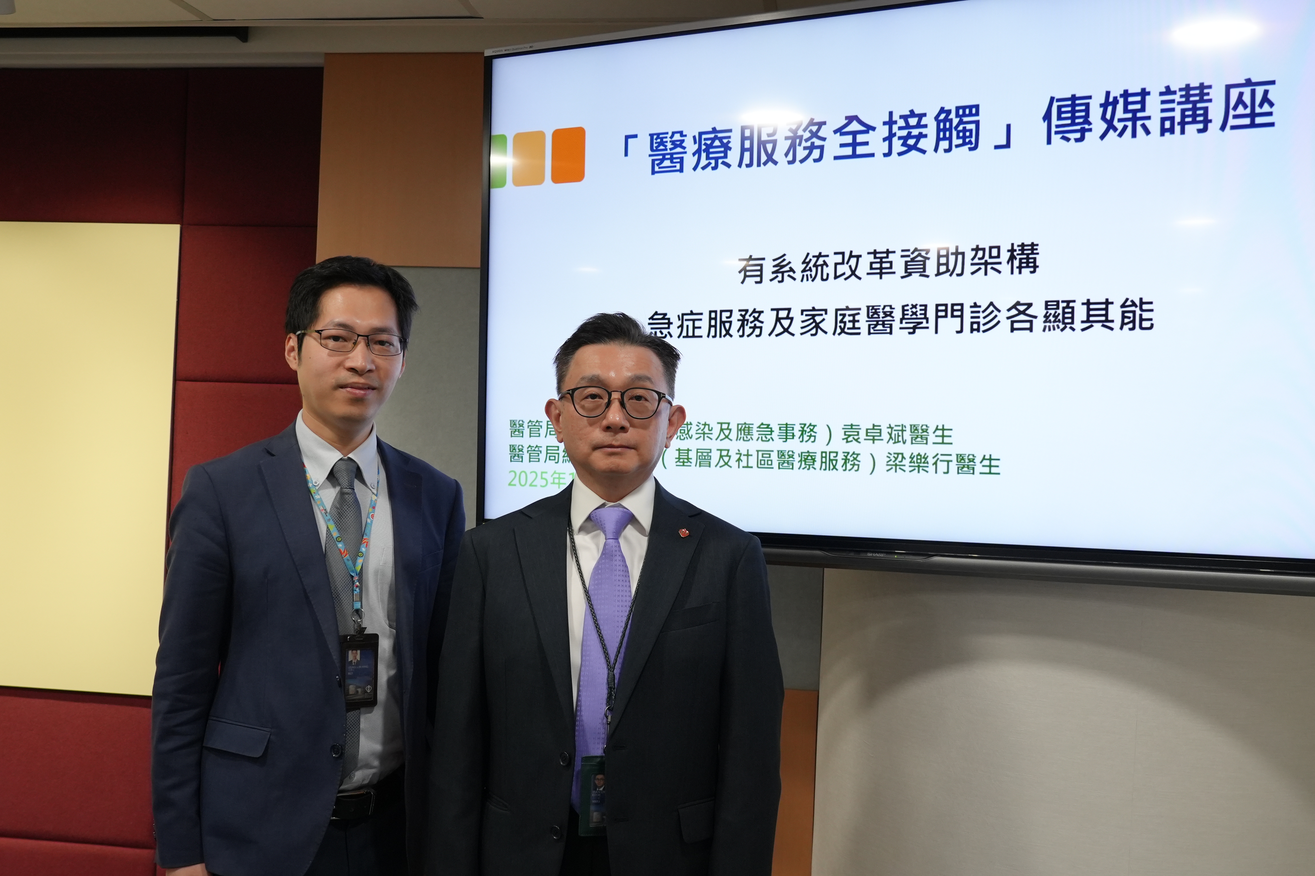 醫管局總行政經理(基層及社區醫療服務)梁樂行介紹家庭醫學門診服務(前稱普通科門診),醫管局轄下共有75間家庭醫學診所,包括11月最新啟用的將軍澳南家庭醫學診所。由2026年1月1日起,家庭醫學診所診症服務由現時的50港元調整至150港元;處方藥物(以4星期為收費單位,自費藥物除外)由現時免費,調整至5港元;敷藥或注射服務由現時19港元,調整至50港元;非緊急放射科服務及病理學檢驗服務由現時免費,調整至基礎項目免費,進階項目按每項服務收費。