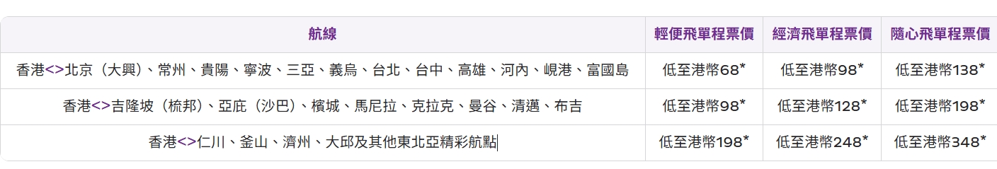 單程$198起,隨心飛包20kg寄艙行李$348起:東京(羽田/成田)、大阪、福岡、名古屋、沖繩、石垣、高松、廣島、仙台、小松、首爾、釜山、濟州、大邱