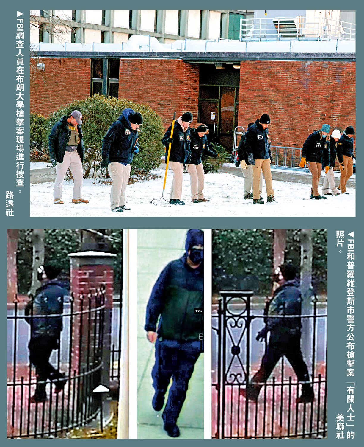 大公報綜合報道,位於美國普羅維登斯市的布朗大學當地時間13日發生槍擊案,造成2死9傷。截至本港時間17日凌晨,槍手仍未落網。警方15日公布新的監控視頻,聯邦調查局(FBI)宣布懸賞5萬美元(約39萬港元)徵集疑犯的線索。美國前國土安全部助理部長凱耶姆稱,受大雪影響,「大部分證據可能都已消失」;而FBI此前拘捕一名「相關人員」,卻表現得好像已經逮捕了疑犯,導致調查延誤18至24個小時,後續追查將更加困難。