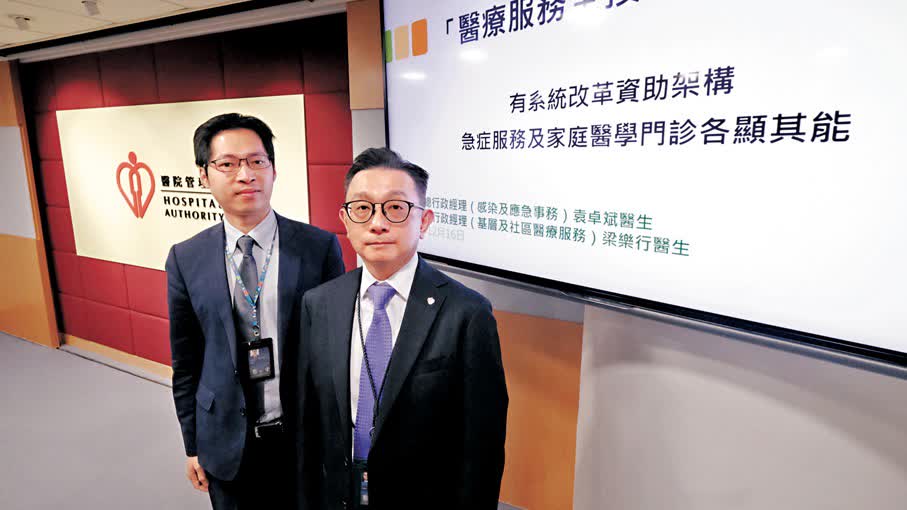 袁卓斌昨日在記者會上表示,急症室服務面臨挑戰,首先是病情穩定的「次緊急」及患有輕微疾病的「非緊急」個案,過往的比例高企,佔用原本應用於處理更緊急個案的醫療資源。根據去年與今年上半年數據,「次緊急」及「非緊急」病人合共比例維持在約55%左右,即過半資源用於這兩類別病人身上;其次面臨的挑戰則是診治程序日益精細複雜,人口老齡化、慢性病引起的相關急性併發症日趨常見,以及醫護人手流失。