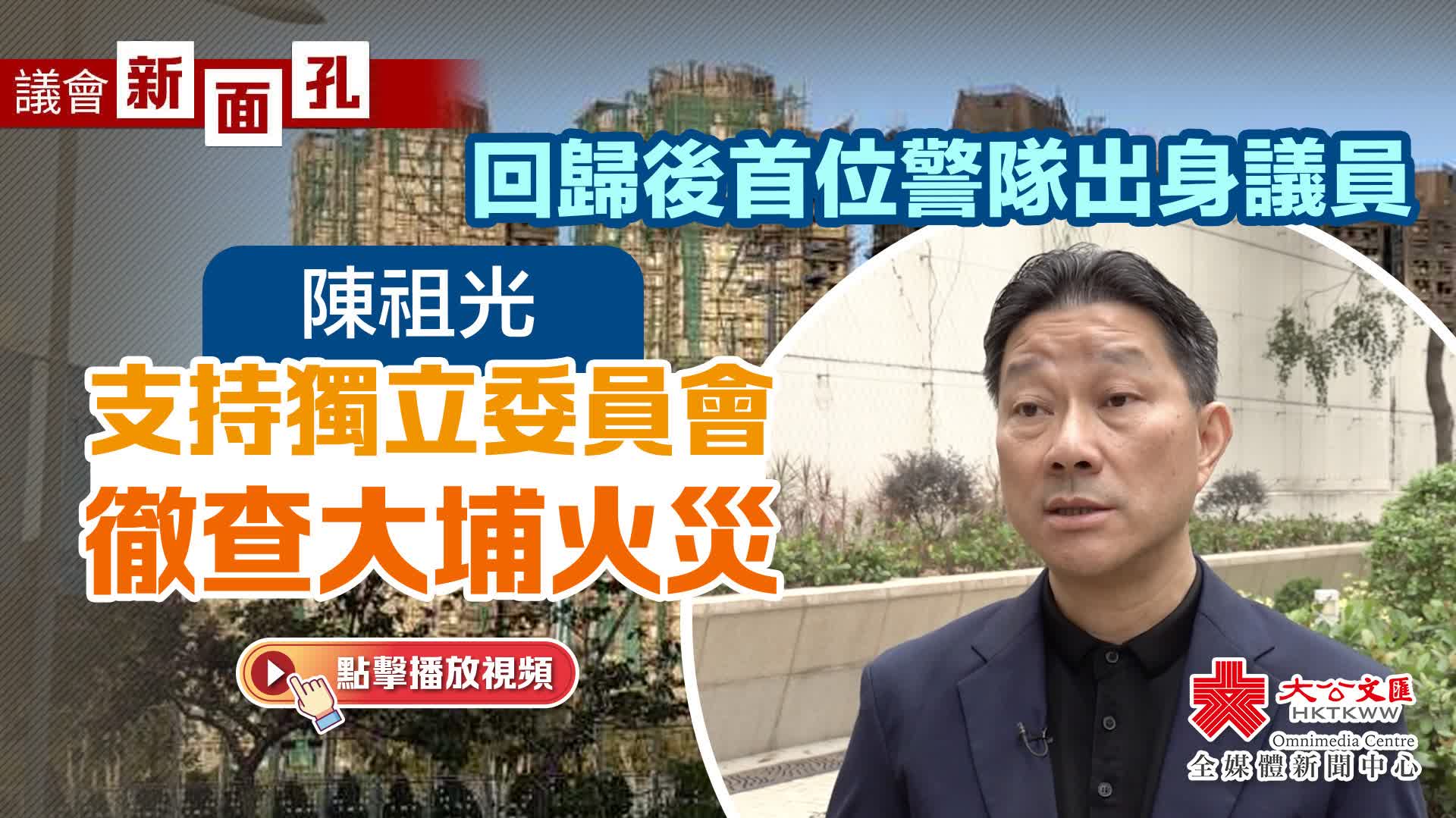 (大公文匯全媒體 記者 劉妍伶)新一屆立法會換屆選舉於12月7日圓滿結束,90名議員全部選出,當中有40位「新面孔」。作為本屆唯一一名警隊出身的候任議員,香港警察隊員佐級協會前主席陳祖光在還未正式上任之時,便受到外界廣泛關注。近日,陳祖光接受大公文匯全媒體專訪時指,需充分相信特首李家超成立的「獨立委員會」,讓其真正客觀地調查大埔宏福苑火災。陳祖光稱未來將重點關注維護國安,教育及人口老齡化問題,並強調會在議會發揮好自身紀律部隊優勢。