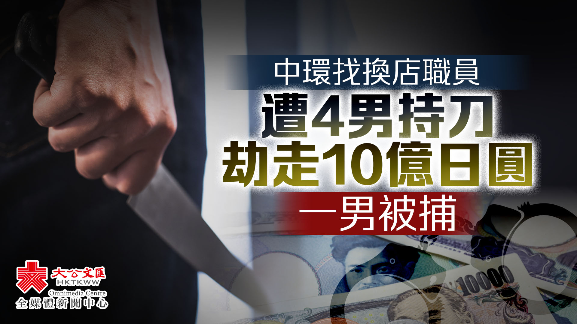 大公文匯全媒體報道,中環今日(18日)有找換店發生搶劫案。上午9時06分,警方接獲一名找換店職員報案,指在皇后大道中181號對開街頭,懷疑遭4名男子持刀搶劫,賊人搶走10億日圓(約5000萬港元)後往皇后大道中西行方向逃去。
