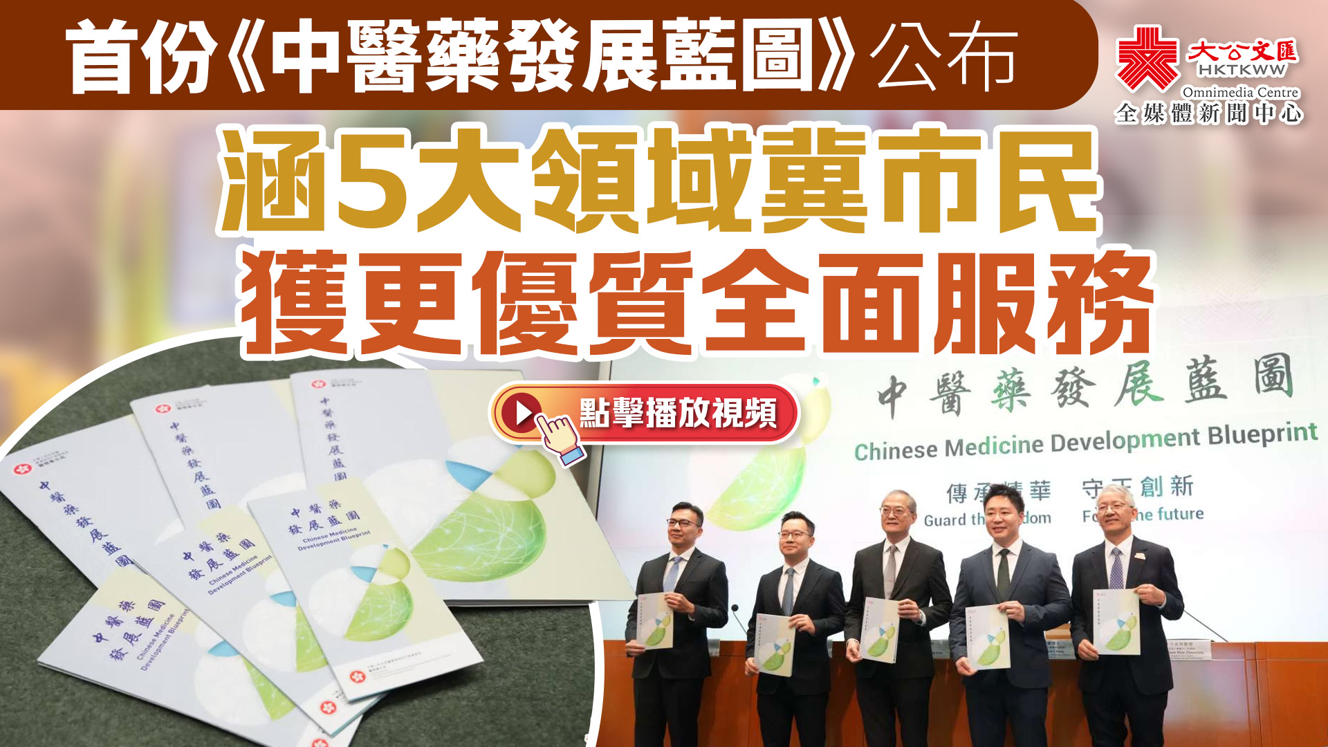 據介紹,《藍圖》為香港首份針對中醫藥發展制定的計劃,經過近400次諮詢。《藍圖》願景是傳承中醫藥智慧,背靠國家發展經驗和資源,利用中醫藥讓香港市民享有更優質及更全面的醫療服務以提升健康水平,同時建設香港成為中醫及中藥走向世界的橋頭堡。