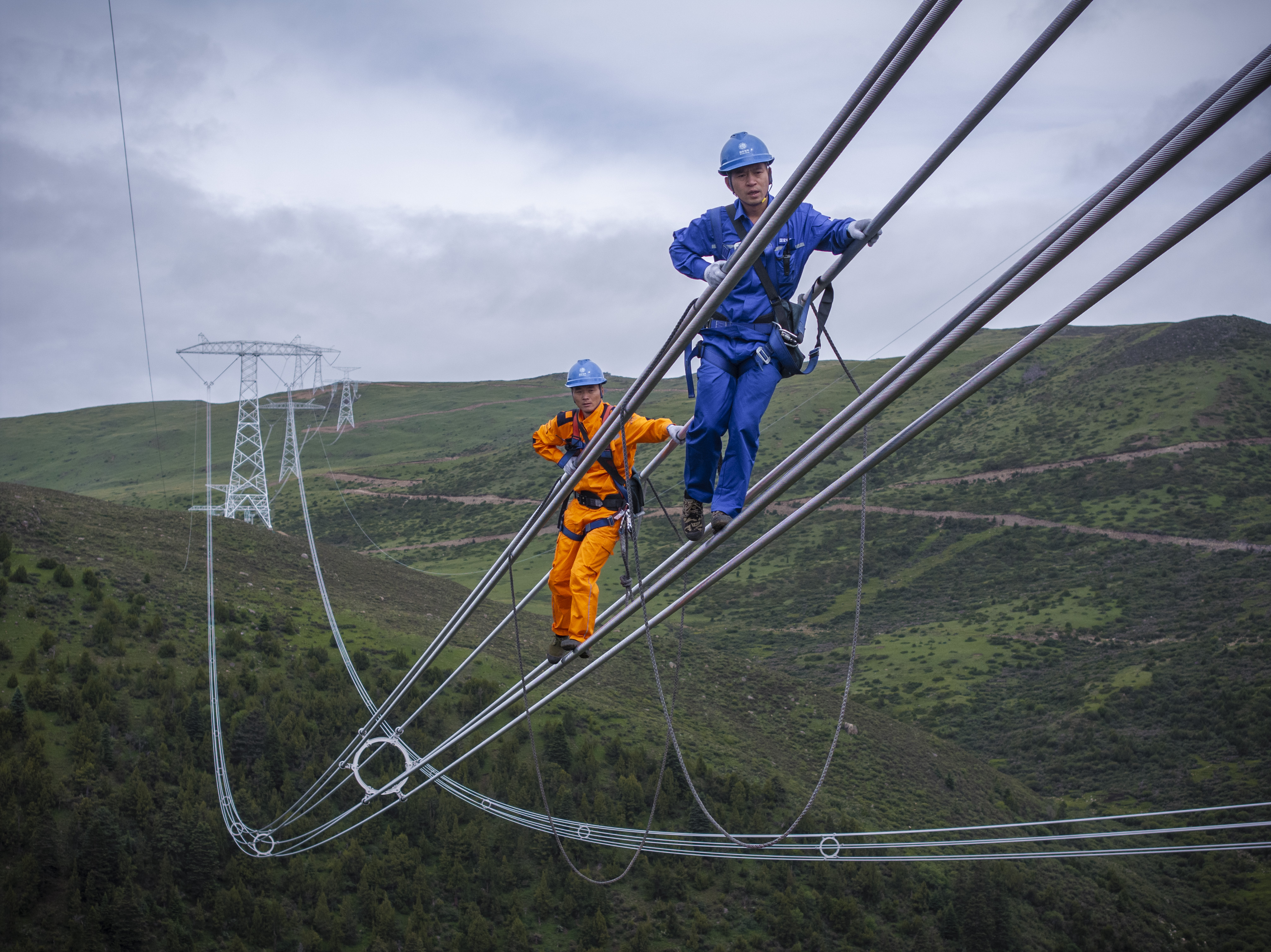 作為首個深入川藏高原腹地的特高壓工程,工程直面地域與技術的雙重「無人區」。在送端換流站海拔3720米,線路最高海拔超4800米,建設環境面臨高寒缺氧、地質複雜、有效施工期短、生態脆弱等極端挑戰的情況下,項目組構建了全方位安全健康保障體系,率先踐行「勘察-設計-施工-監測」一體化生態保護體系,成功應對了高原機械降效、超長距離物資運輸、複雜地質災害等多重難題,實現了重大安全「零事故」。