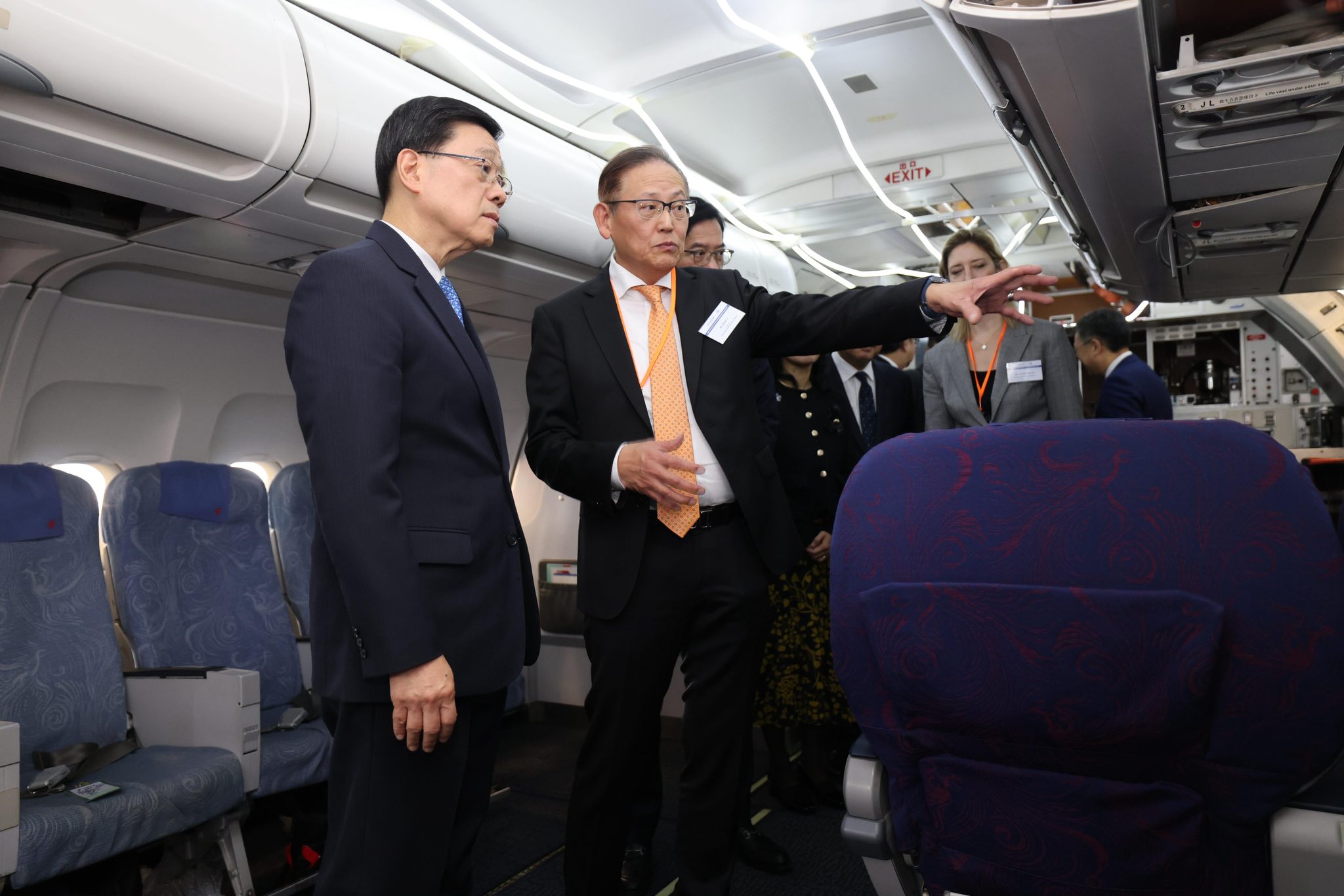 啟動儀式後,李家超參觀了香港國際航空學院的飛機工程訓練艙,由校長李天柱介紹訓練艙內不同高價值飛機組件,包括駕駛艙內的空中交通管制應答機、音訊控制面板及顯示器,以及機艙內的化學氧氣產生器等。這個前身為空中巴士A319的訓練艙是香港首個由商用客機改建而成的飛機工程訓練艙,將大大有助學員提升有關飛機維修以及處理高價值零件的實際操作經驗,為日後成為航空業專門人才鋪路。