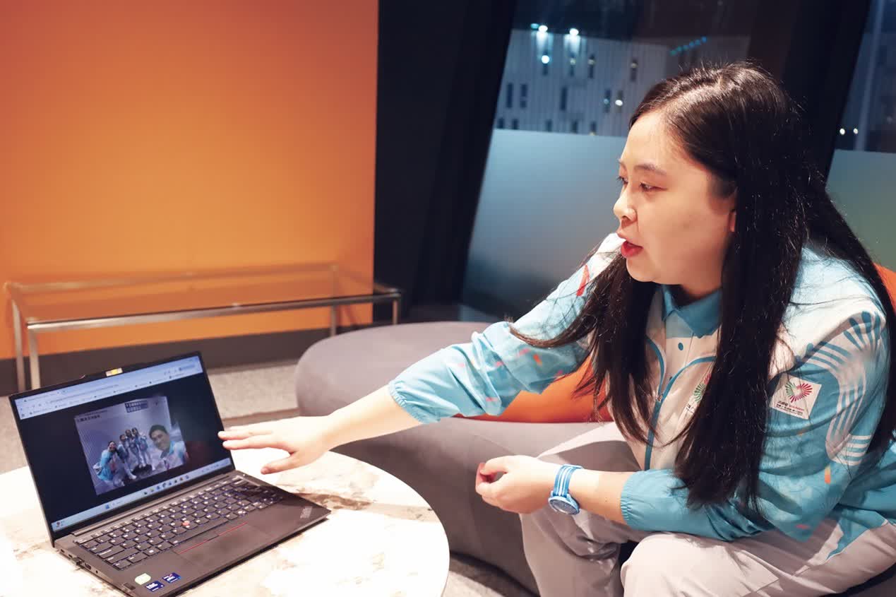 她將企業管理中的可持續發展與效率思維自然融入到義工團隊協調中。例如,在協助媒體前往採訪地點時,她會考慮如何減少不必要的往返,提升工作效率的同時也降低能耗。此外,心思細膩的她在值班時,運用簡單的創意,以「喜洋洋」及「樂融融」為主題設計了部分工作指示和標識。「這些小巧思能瞬間拉近距離,讓大家在緊繃的工作中找到一絲溫暖的連結,協作起來也更順暢。」「喜洋洋」與「樂融融」的活潑形象,讓人深深感受到國家蓬勃發展,欣欣向榮。