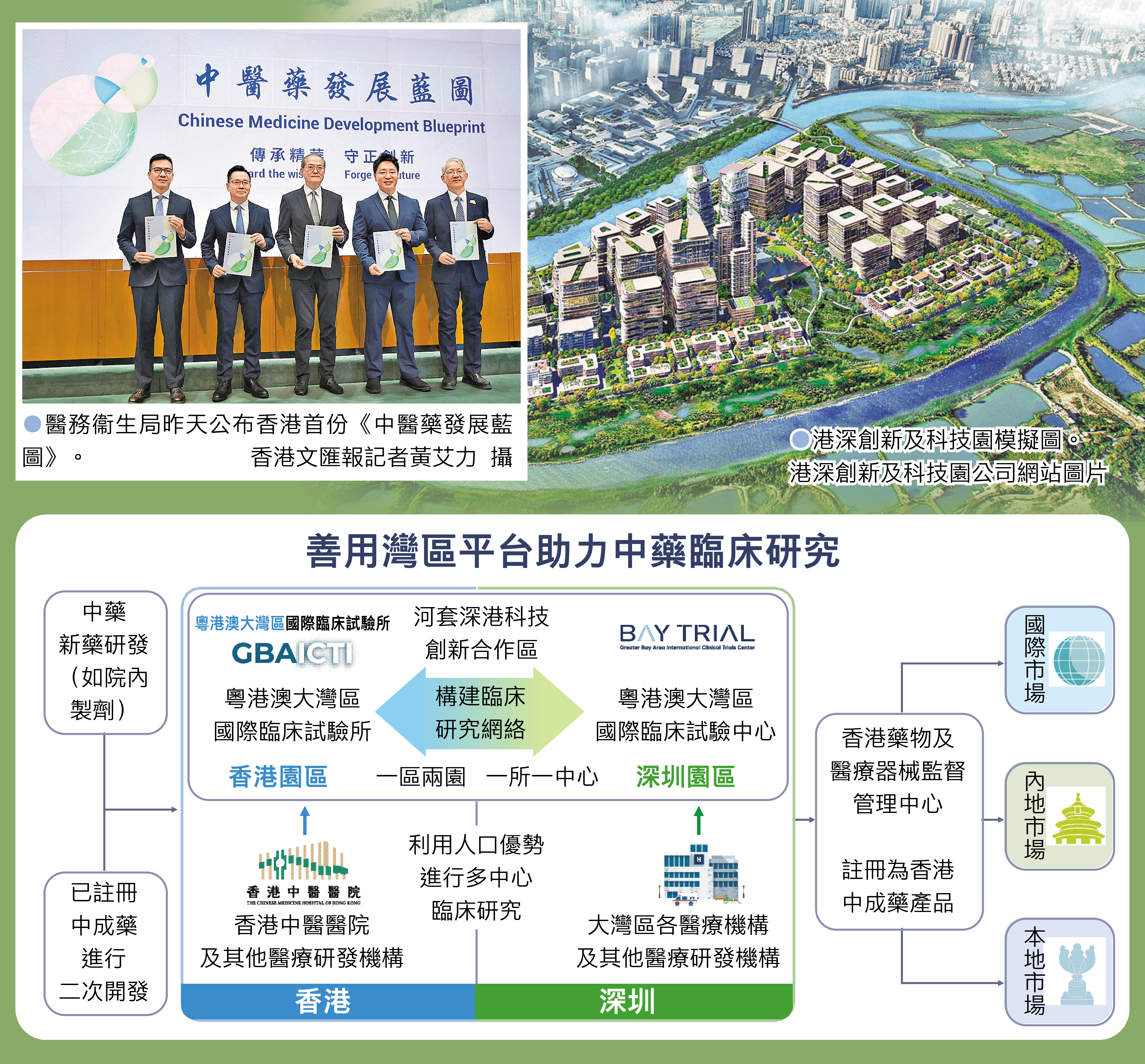 (香港文匯報 記者 張弦)中醫藥是中華文明的瑰寶,新冠疫情期間中醫藥就發揮顯著作用。為推動中醫藥發展,特區政府醫務衞生局昨日公布香港首份《中醫藥發展藍圖》,提出涵蓋5大領域、8個目標及20個行動的願景,推動中醫藥全方位、高質量及高水平發展,當中包括強化中藥質量管理。香港文匯報早前深入揭露坊間仿冒中成藥(俗稱「影射藥」),《藍圖》着墨甚多,提出將會從成分及藥名等方面入手,並透過修例擴大中成藥定義,將有機會誤導的產品納入規管。同時,政府將有序地將中醫專科化,以及發揮香港「背靠祖國、聯通世界」的獨特優勢,助力國家推動中醫藥走向世界。