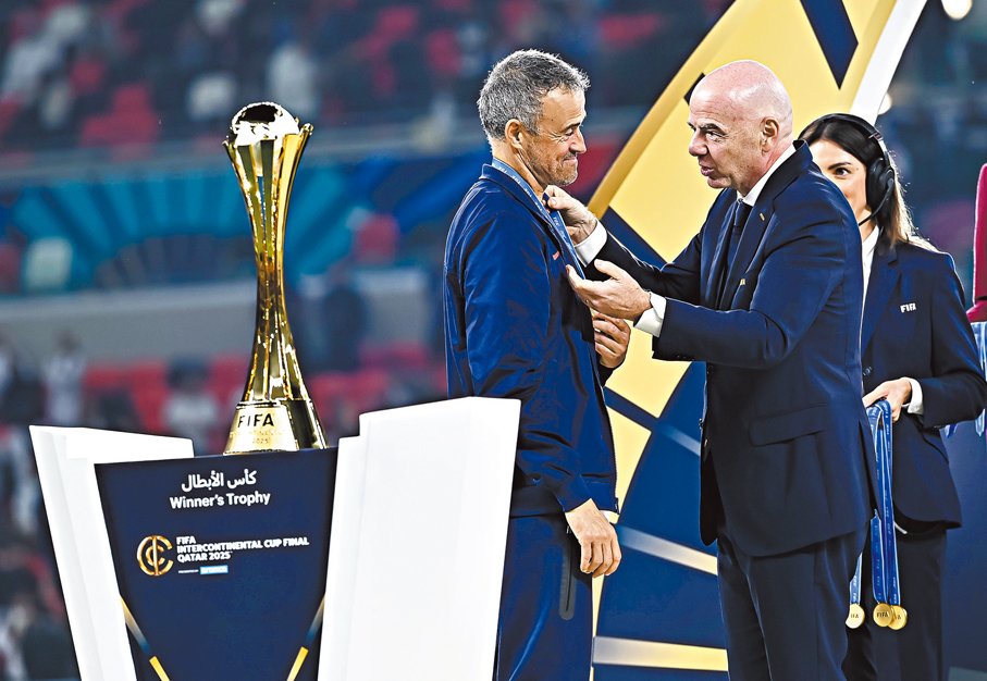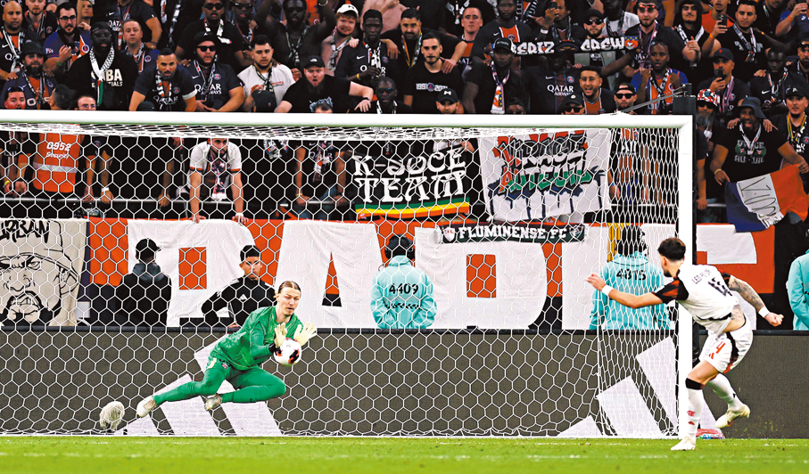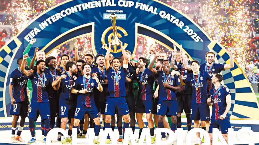 (香港文匯報 記者 郭正謙)法甲班霸巴黎聖日耳門(PSG)完成六冠霸業!昨日(18日)凌晨舉行的國際足協洲際盃決賽,PSG在法定時間與巴西勁旅法林明高踢成1:1平手後,憑藉門將施科諾夫於互射十二碼撲出四球的驚人演出,以總比數3:2勝出奪冠,成為史上第三支「年度六冠王」球隊,為2025年畫上完美句號。