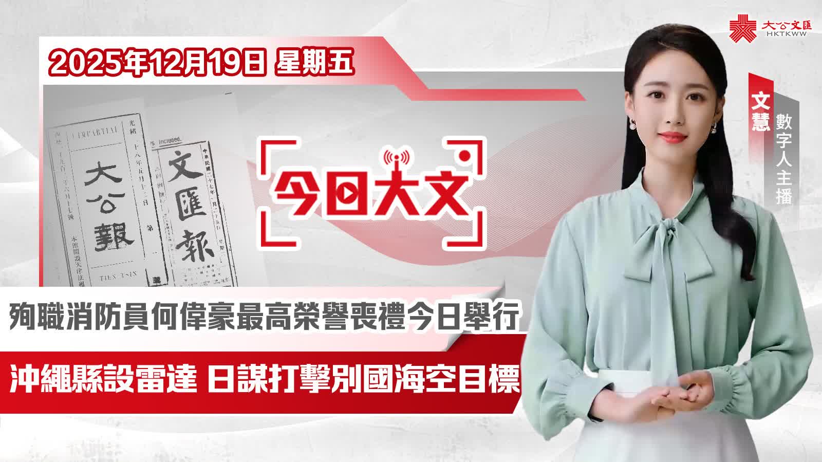 大公文匯網報道,今天是2025年12月19日(星期五),大公文匯網與您速覽報紙看點。