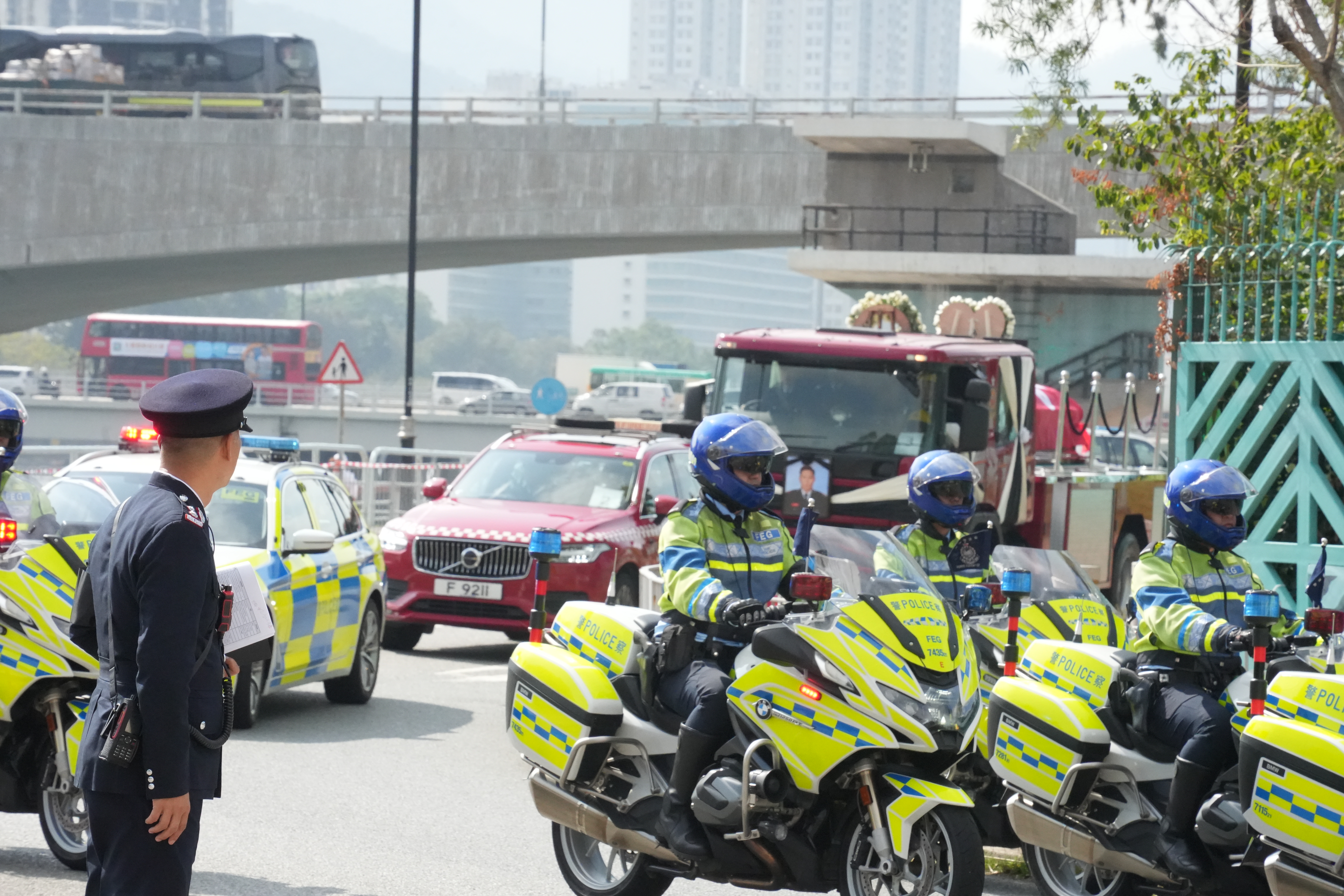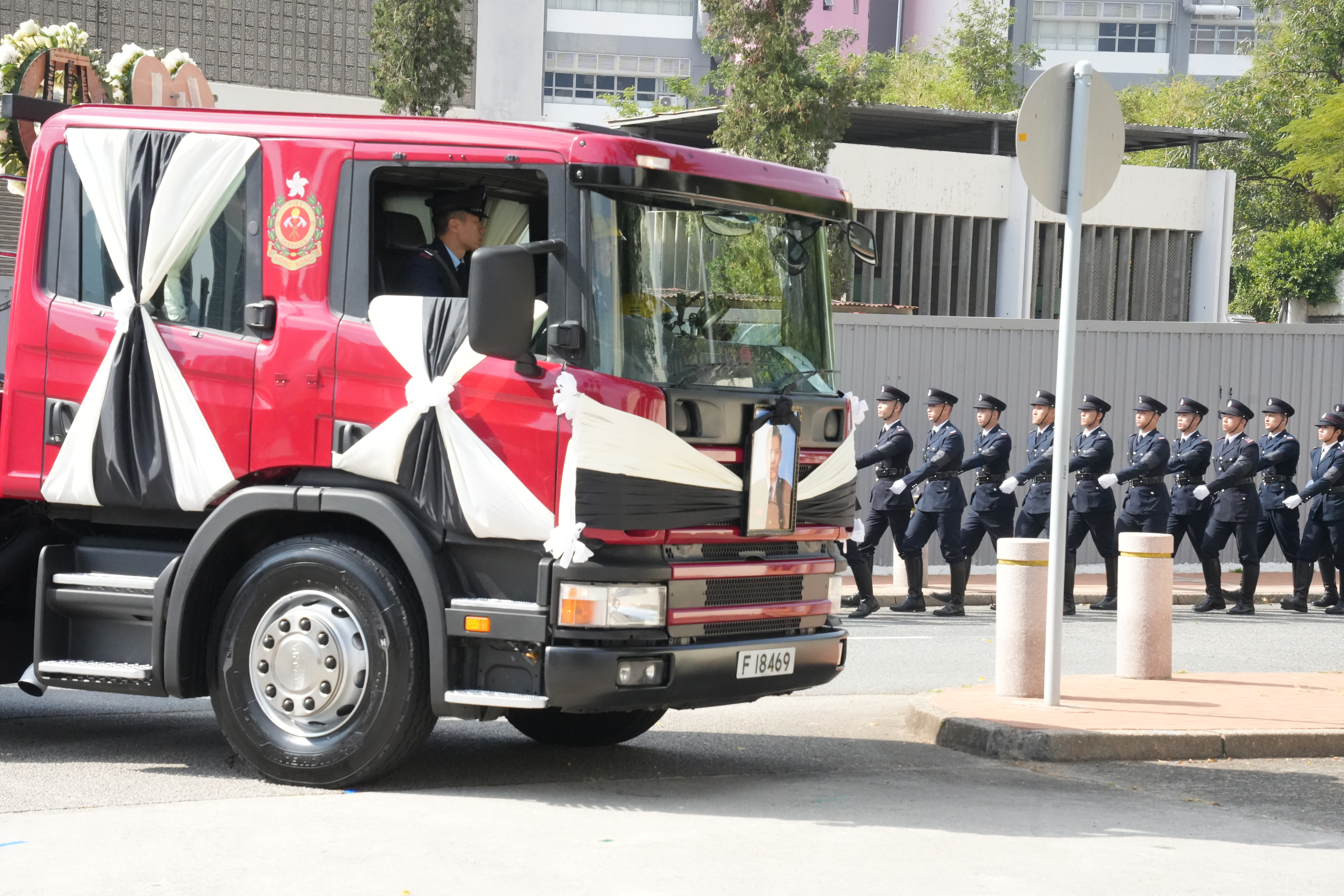 大公文匯全媒體報道,大埔宏福苑11月26日發生五級大火,造成嚴重傷亡。於滅火行動中不幸殉職的37歲消防員何偉豪,昨日(18日)於紅磡世界殯儀館設靈,消防處今日(19日)為何偉豪舉行最高榮譽喪禮。
