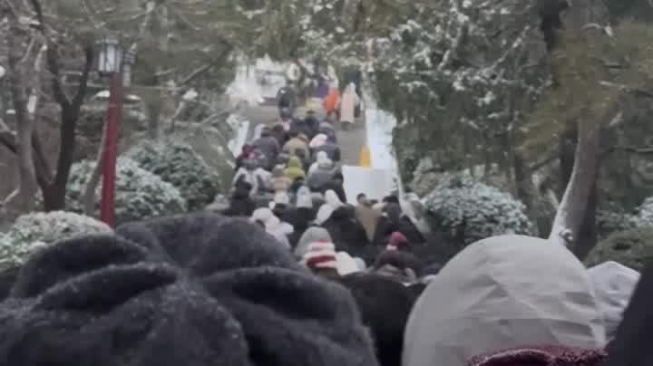 白雪覆蓋下的景山,處處皆是詩意畫卷。成山上萬的遊客拾級而上,腳下積雪簌簌作響,路旁松柏披霜帶雪,更顯蒼勁挺拔。行至山頂萬春亭,壯闊風光盡收眼底:不遠處的紫禁城紅牆黃瓦,在白雪映襯下愈發明艷奪目,錯落有致的宮殿群連綿鋪展,盡顯皇家氣派與古都冬日的雄渾靜謐。遊客們紛紛舉起相機、手機,將這幅「雪落皇城」的限定美景定格,歡聲笑語回蕩在山間。