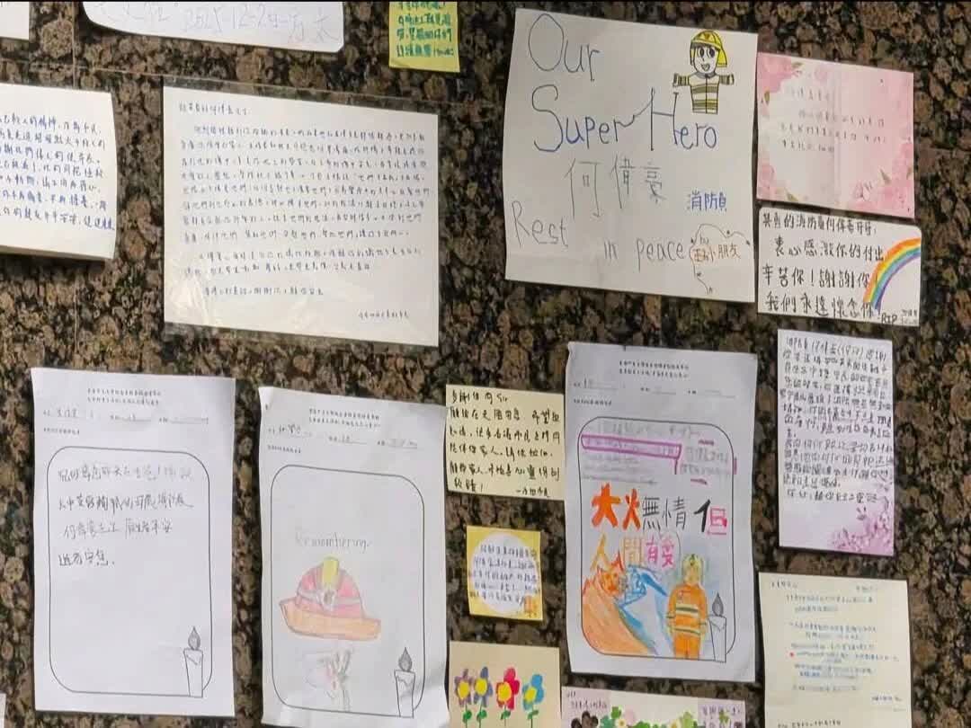 不少市民包括大埔宏福苑居民送來花圈和悼念卡,感謝英雄無私奉獻、捨身救人:「我們會永遠記得你!」