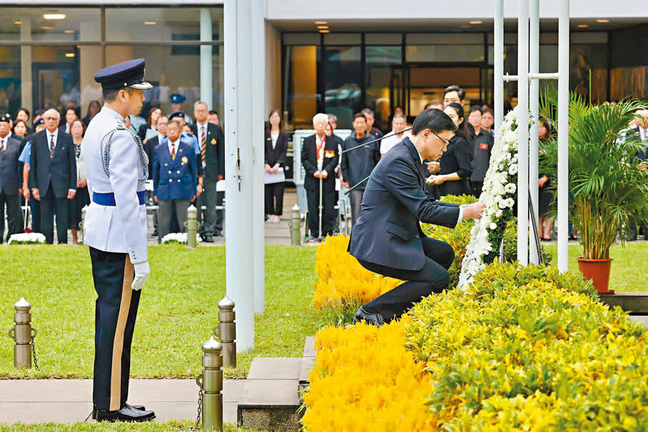 昨晚,行政長官李家超、全國政協副主席梁振英、政務司司長陳國基、保安局局長鄧炳強和各紀律部隊首長陸續到場弔唁。