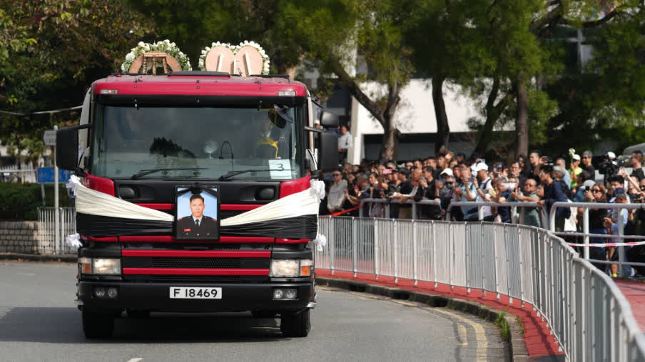 在宏福苑大火中英勇殉職的消防員何偉豪,昨日以最高榮譽喪禮舉殯。眾多政府官員、社會賢達、消防同袍和大批市民參加儀式,向英雄作最後致敬。