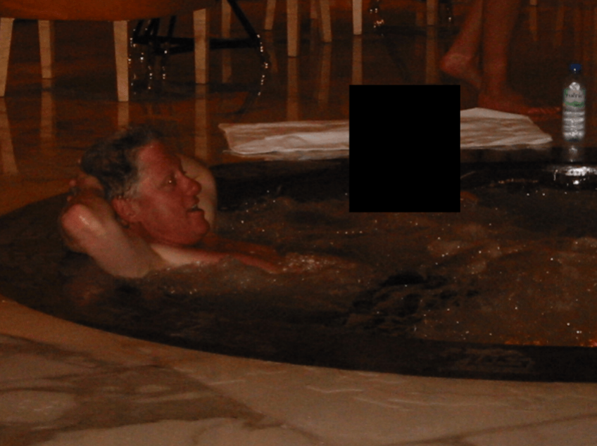 19日新公開的照片中,有一張顯示克林頓與愛潑斯坦的前女友吉絲蘭·馬克斯韋爾在同一個泳池中,旁邊還有另外一名臉被塗黑的人。另一張照片中,克林頓在浴缸裏,而同一個浴缸裏看起來還有另一個臉被塗黑的人。白宮新聞秘書卡羅琳·萊維特等白宮官員在社交媒體轉發了克林頓的照片。