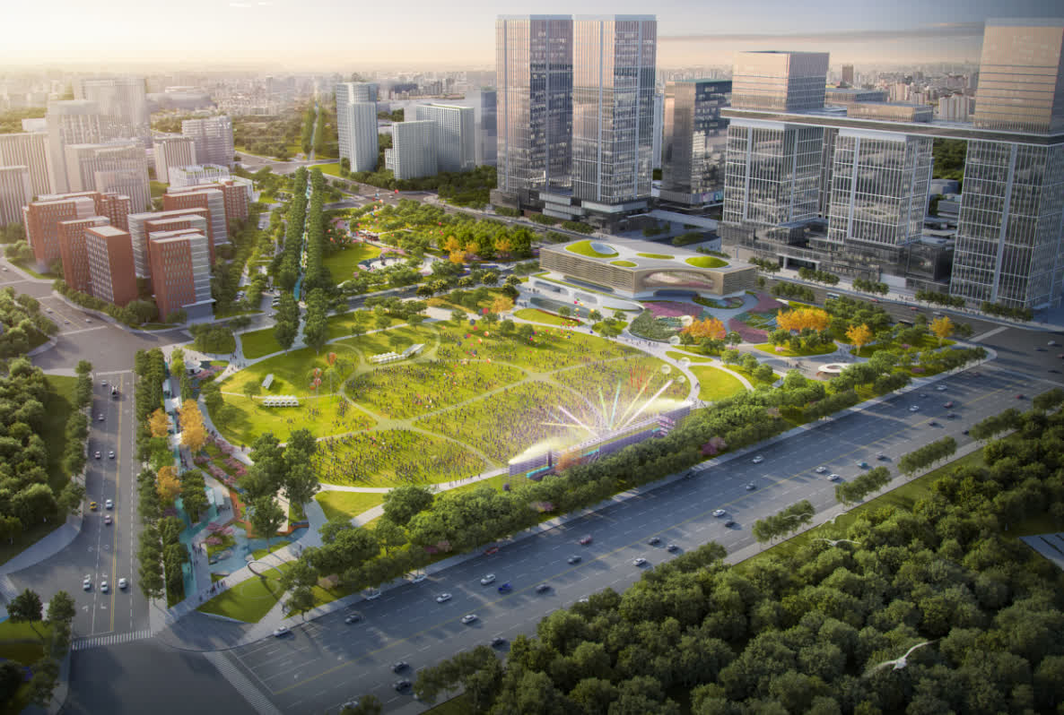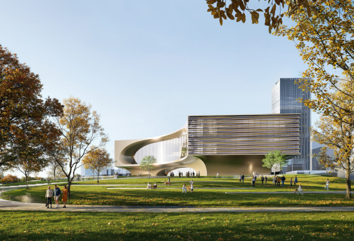 項目對標國際高端會議場館標準,秉持「科技賦能、生態融合」的設計理念,以「未來科技方舟」為形象立意,打造未來科學城面向全球的「城市客廳」與「創新名片」,主要功能區包括創新交流區13400平方米、科技展示區3000平方米、科普研學區2000平方米及園區接待1800平方米。整體方案創新性地採用建築主體與周邊公園設計一體化手法,將生態公園巧妙地融入建築肌理之中,讓自然景觀與建築空間相互滲透、相得益彰。屆時,這座「方舟」將不僅是舉辦高端論壇的場所,更是市民可感、可享的公共空間,實現創新活力與人文魅力的有機融合。